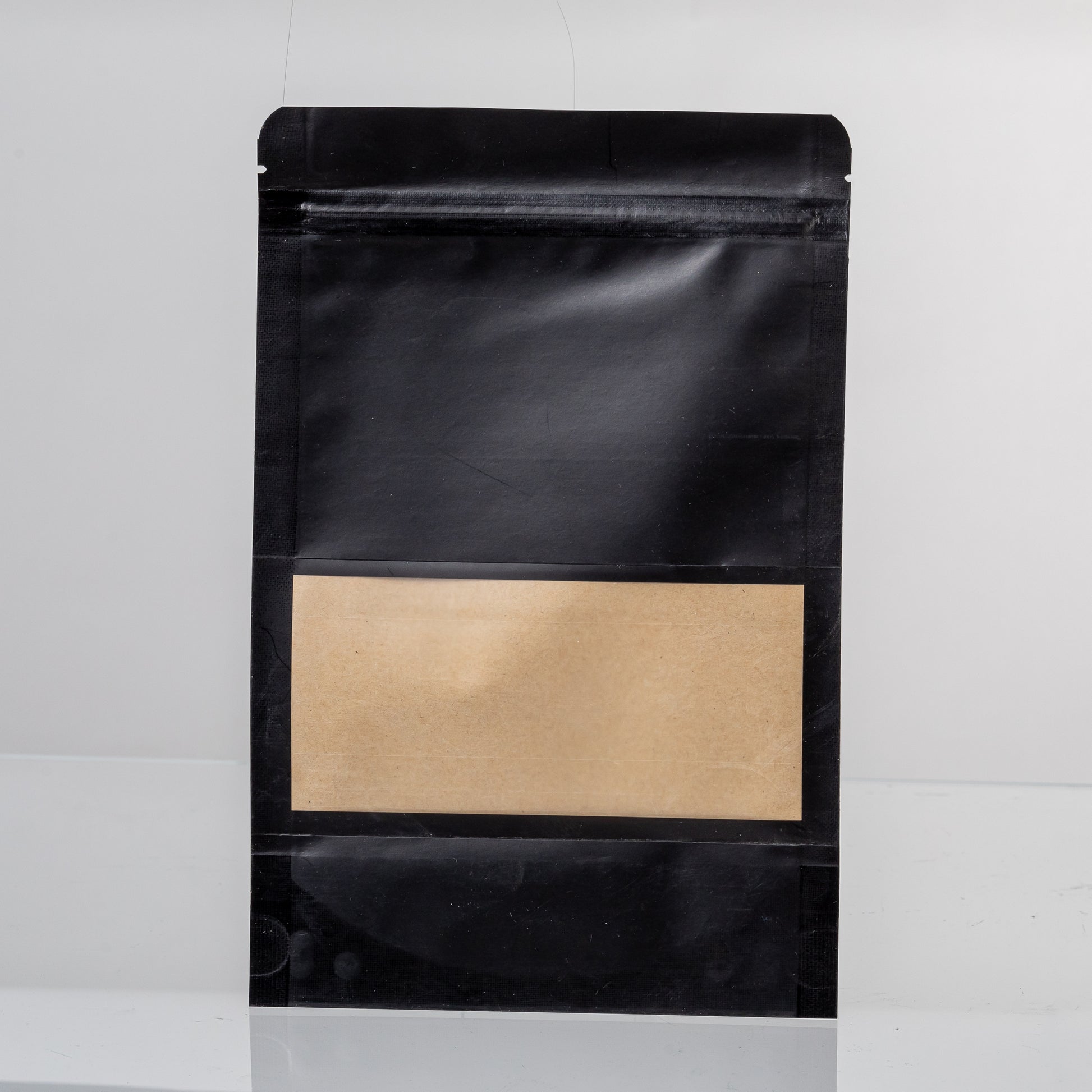 Deze zwart kraft stazakken met venster zijn ideaal voor het verpakken van grotere hoeveelheden producten zoals noten, koffiebonen of gedroogd fruit. Ze zijn gemaakt van stevig 50 grams kraftpapier met een plastic binnenlaag, waardoor ze vetwerend zijn en de inhoud vers houden. Het transparante venster maakt de inhoud direct zichtbaar, wat het zakje extra aantrekkelijk maakt.