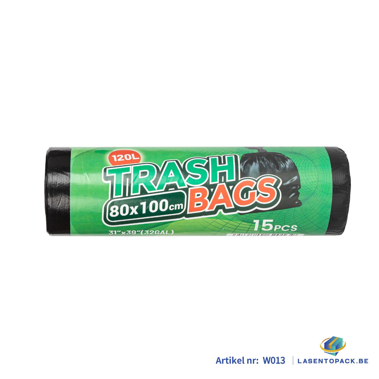 Stuks Zwarte Afvalzakken 120L – 80x100 cm – 15 Stuks op Rol