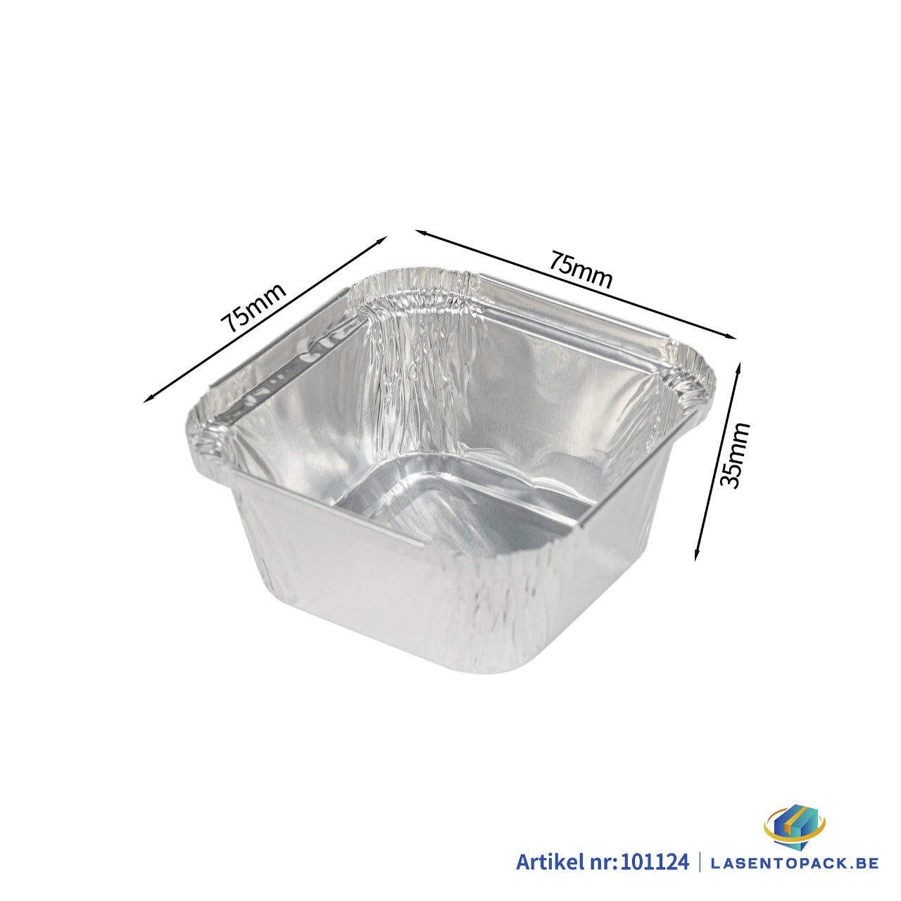 1000 Stuks Aluminium Bakje – 75 x 75 x 35 mm | Inhoud ca. 95 ml | Ovenbestendig