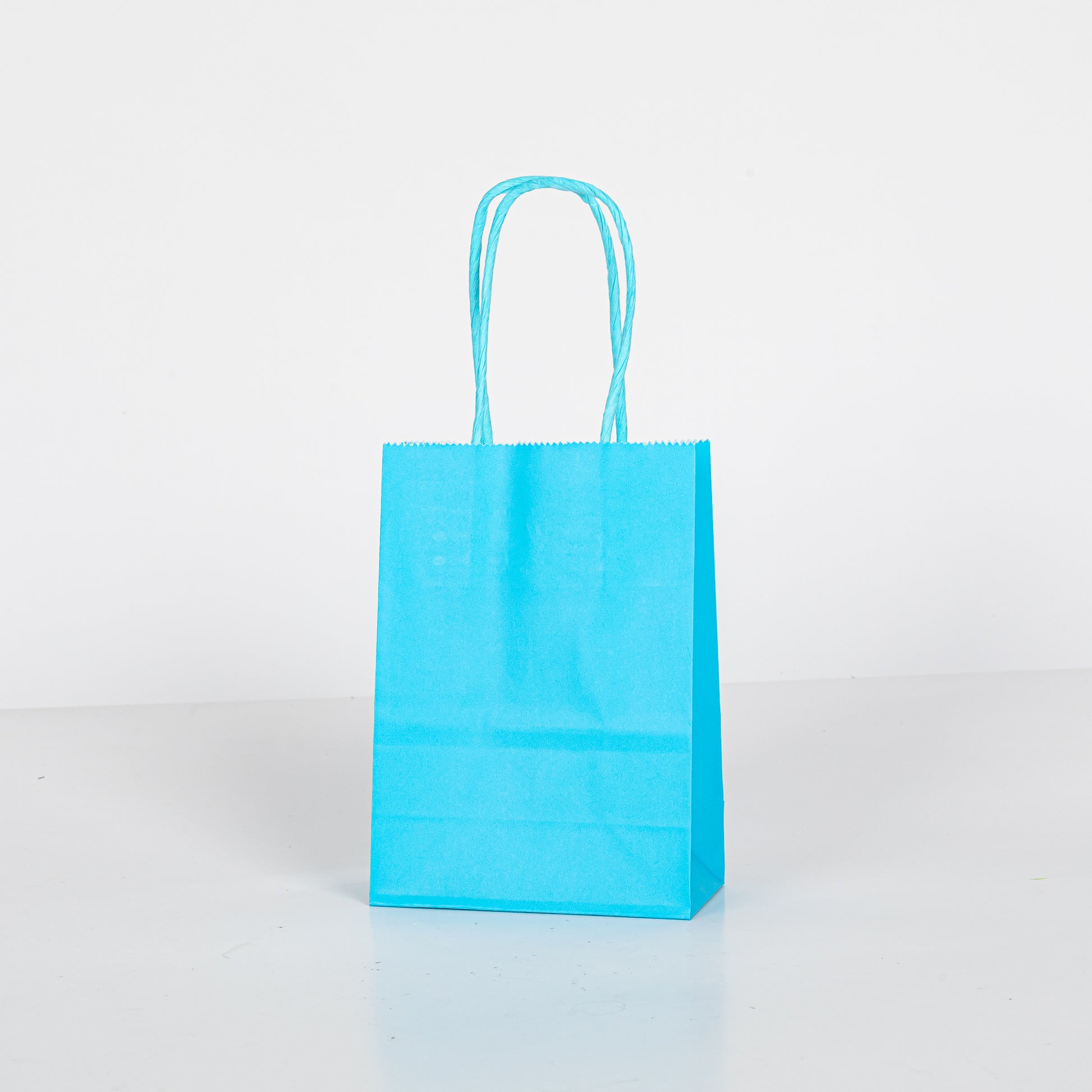 12x Papieren tas gedraaid handvat - 11cm x 15cm x 6cm - Cyan