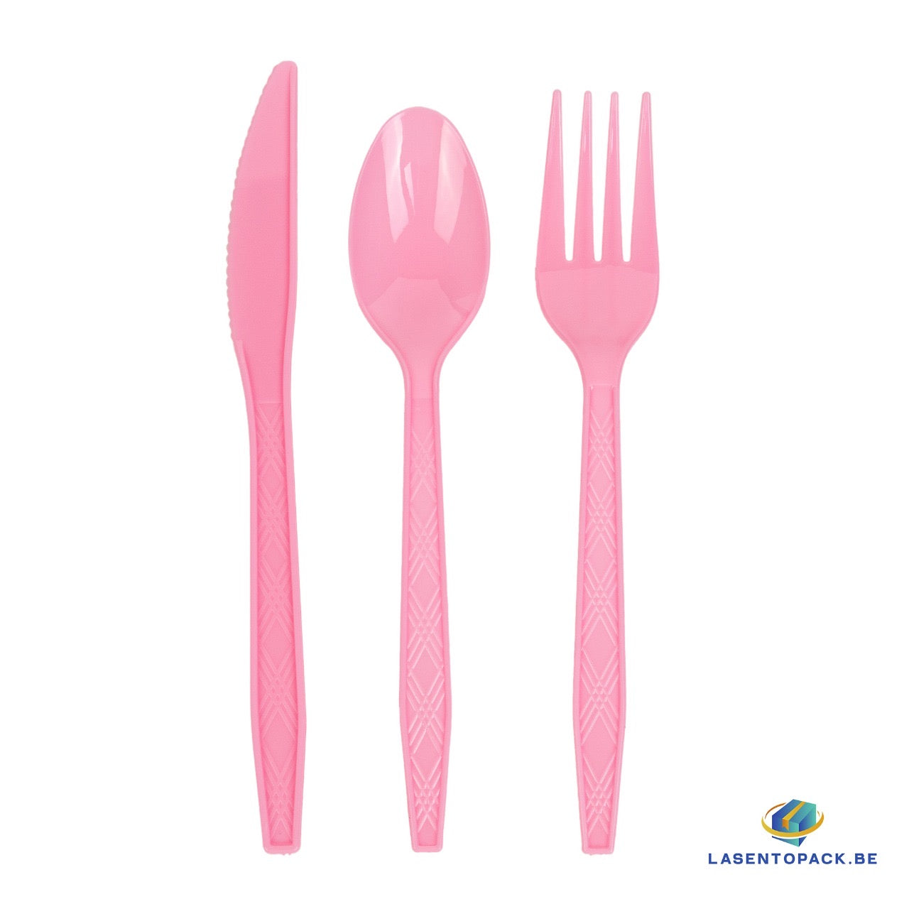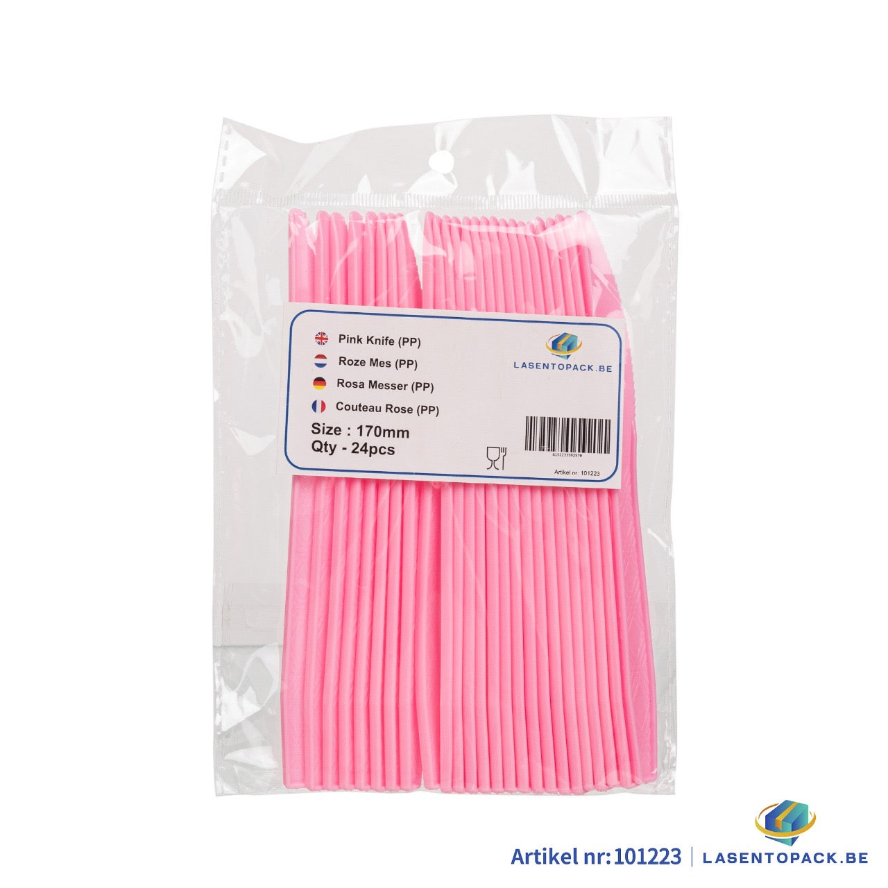 24x Herbruikbaar mes 170 mm (PP), Roze, per 24 stuks verpakt
