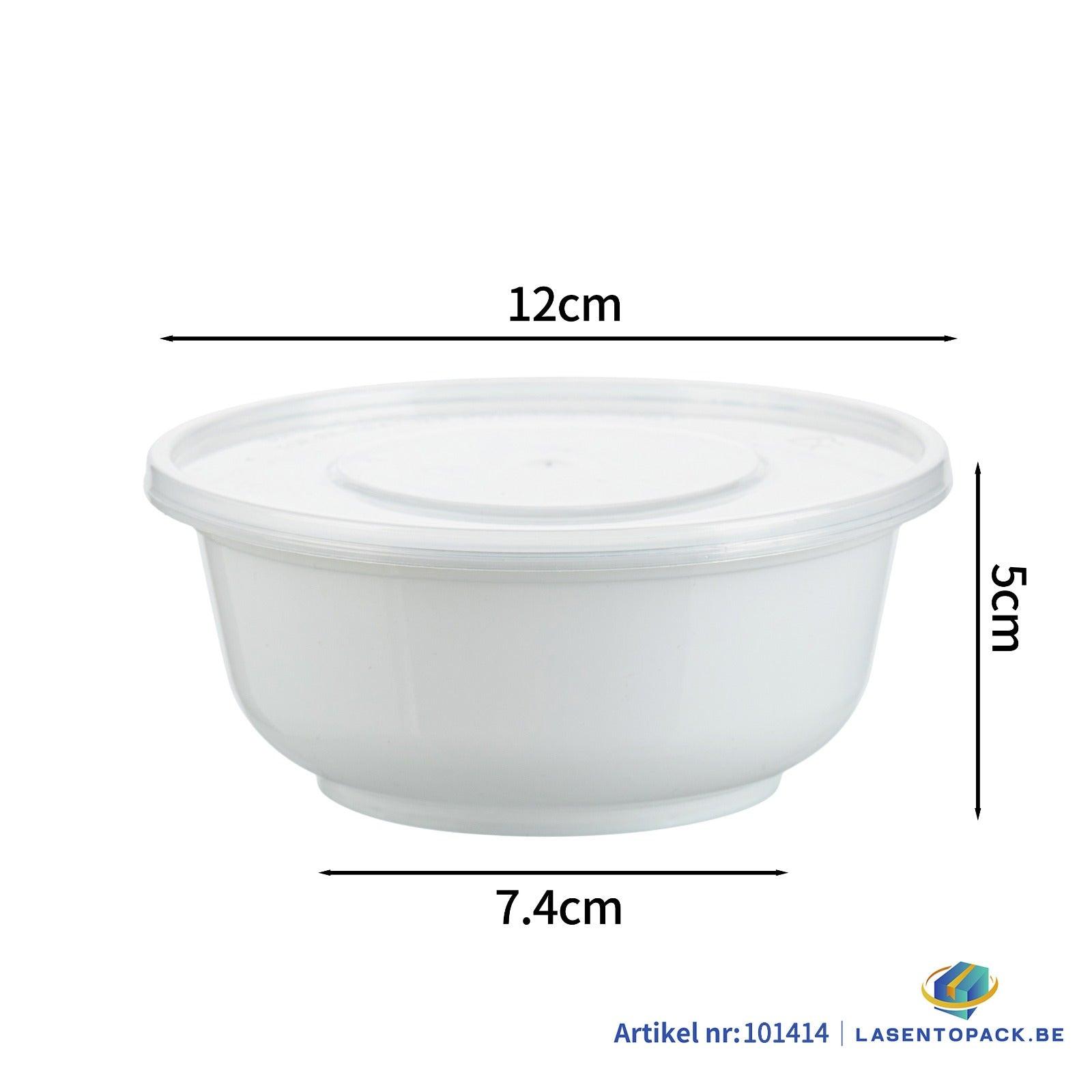 450x Asian Soep- of Pokébowl + Deksel – 360 ml (12 oz) – Wit – Herbruikbaar PP Ø120 mm