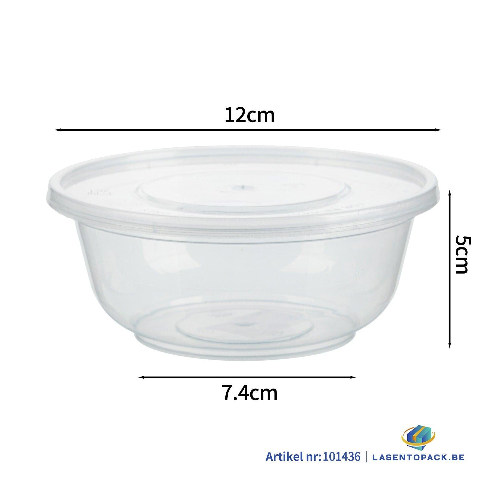 450x Asian Soep- of Pokébowl + Deksel – 360 ml (12 oz) – Transparant – Herbruikbaar PP Ø120 mm