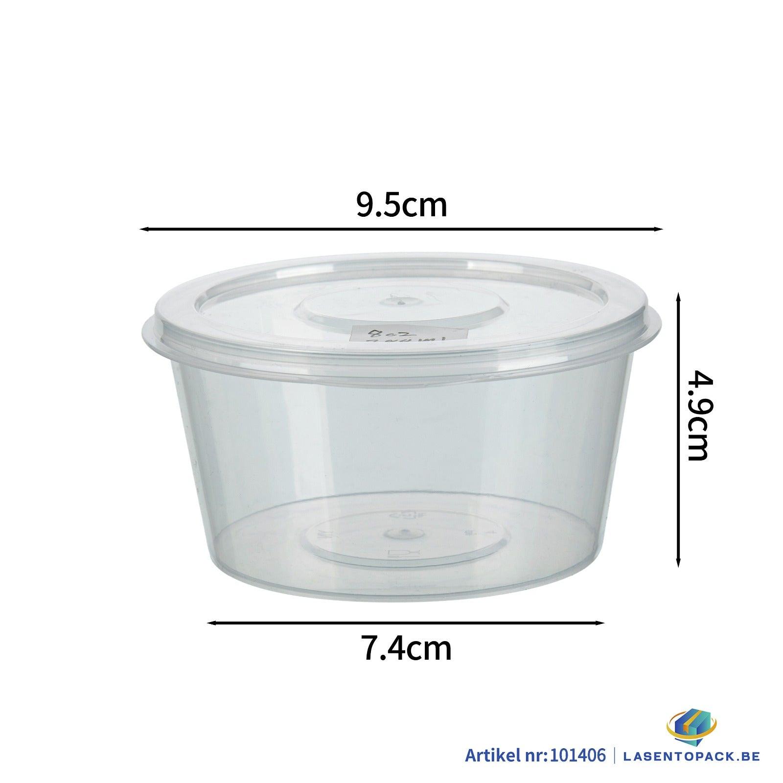 500x Sauscup met Vast Deksel PP 200 cc Transparant Covercup 8oz Ø95mm