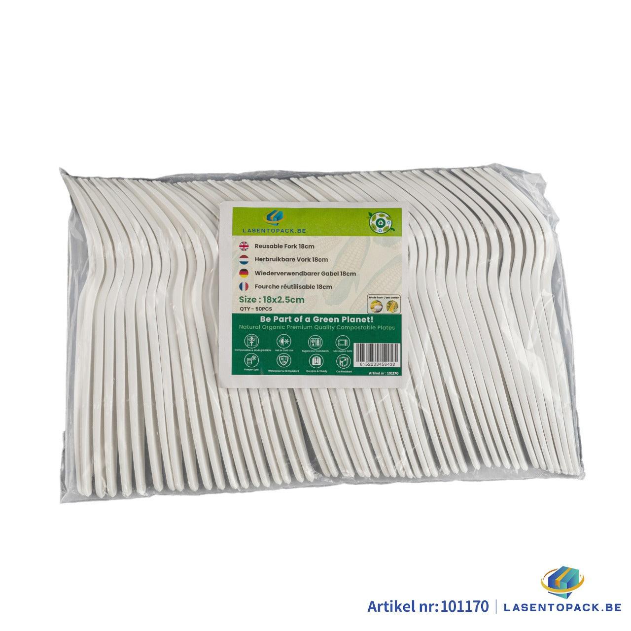 Herbruikbare Vork 180mm – Wit (Mais + PP) | 50 stuks