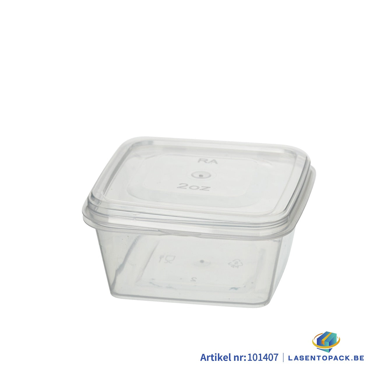 PP Vierkante Sauscup met Vaste Deksel – 60 ml / 2 oz – Transparant (1000 stuks)