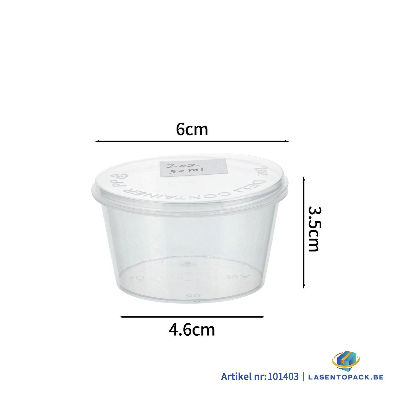 1000x PP Sauscup met vaste deksel 50/60cc - Covercup 2 oz Transparant Ø60mm