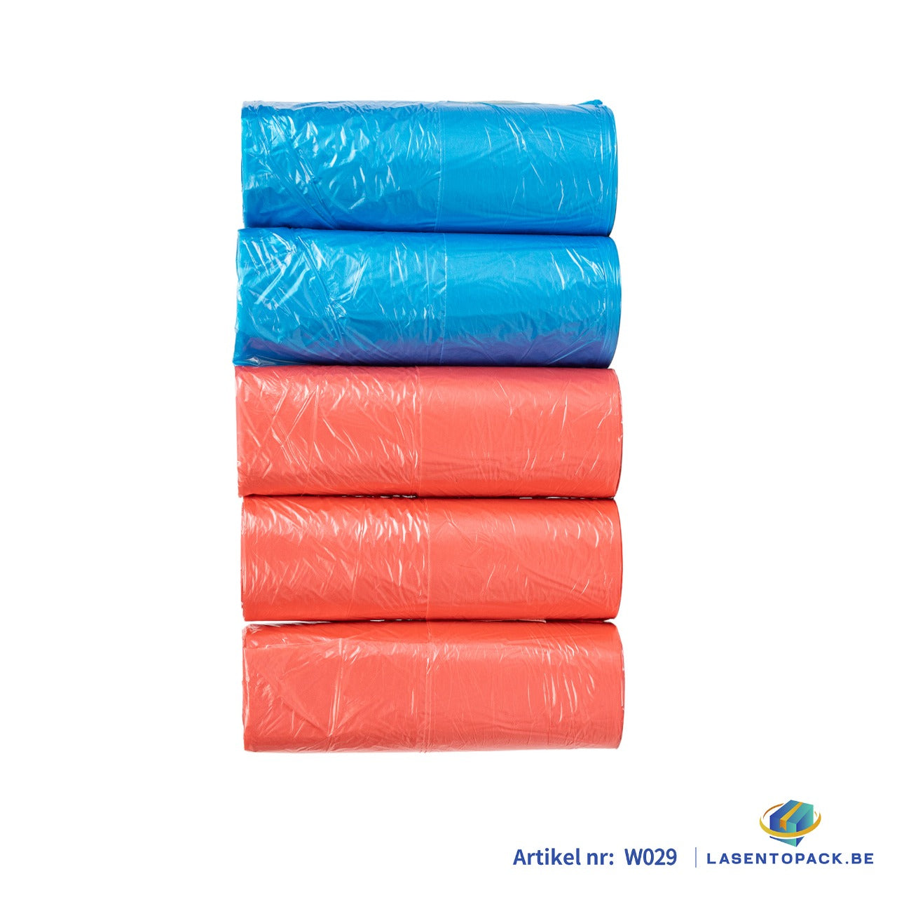 Deze vest-afvalzakken (ook wel "t-shirt bags" genoemd) zijn handige en kleurrijke afvalzakken met handvatten, ideaal voor licht huishoudelijk afval. Dankzij het formaat van 46 x 63 cm hebben de zakken een geschatte inhoud van ongeveer 30 liter. Ze zijn gemaakt van HDPE-materiaal en worden geleverd in twee frisse kleuren: blauw en roze.