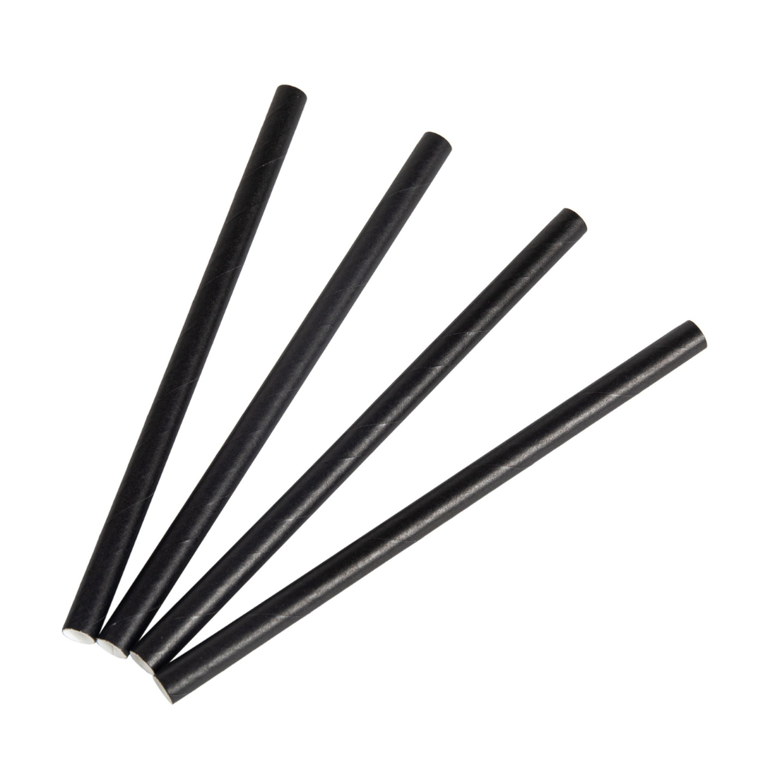 100x BIO Papieren Drinkrietje Ø 8 mm x 15 cm Zwart voor Cocktails