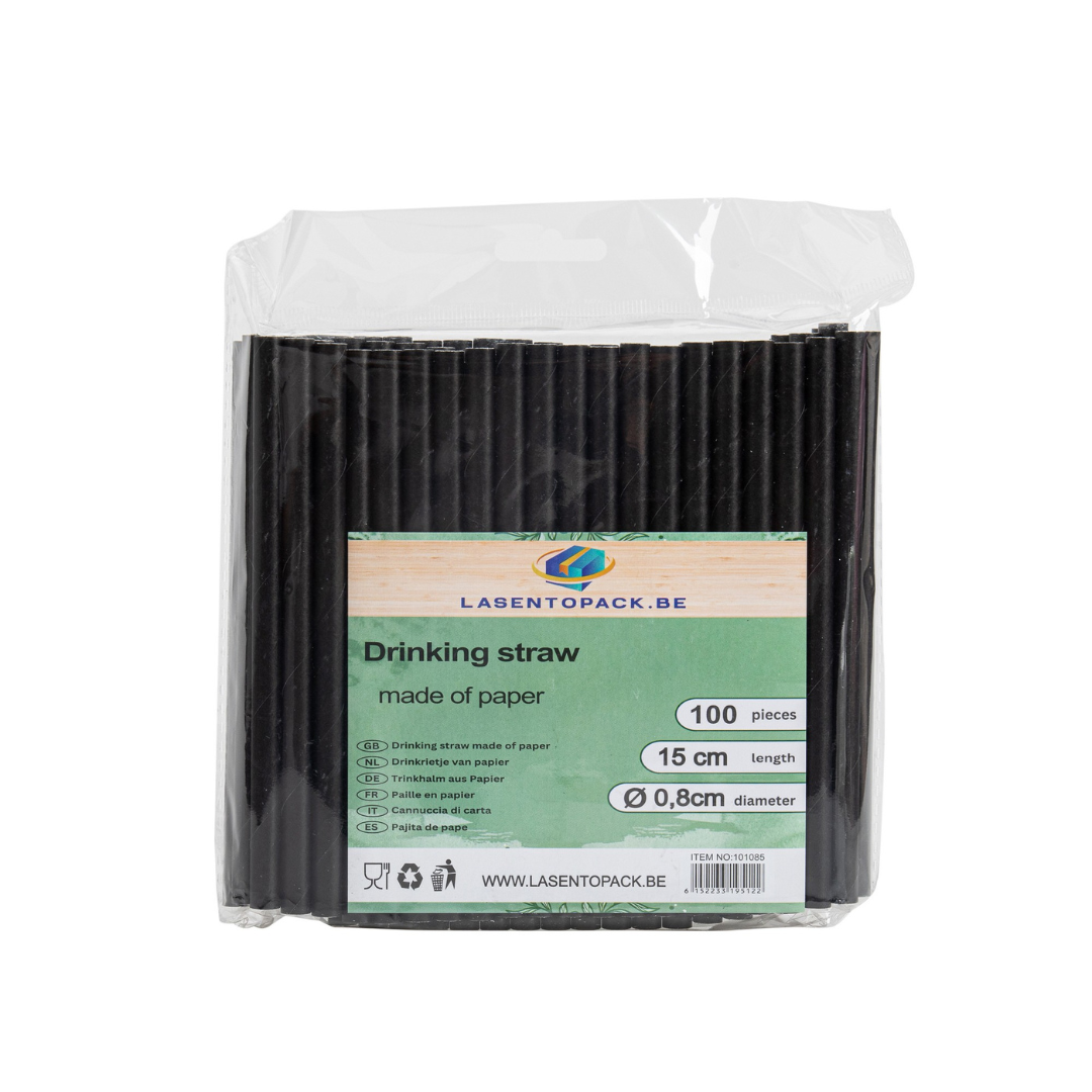100x BIO Papieren drinkrietje Ø 8 mm x 15cm Zwart voor Cocktails