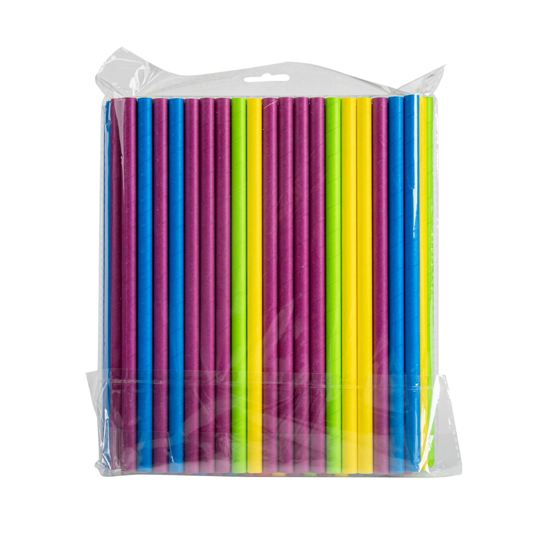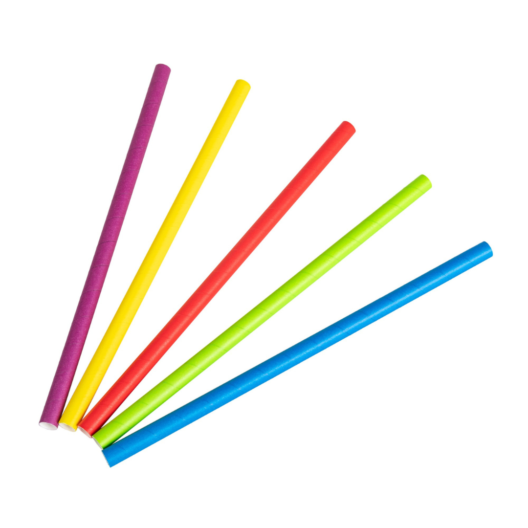 100x BIO Papieren milkshake rietjes 10mm x 240mm Mix Velle Kleuren