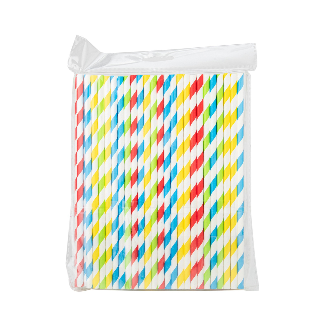100x BIO Papieren rietjes 6mm x 197mm Streepjes Model