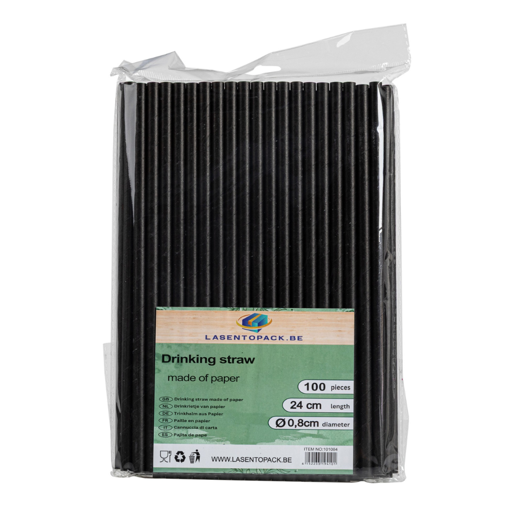 100x BIO Papieren rietjes 8mm x 240mm Zwart