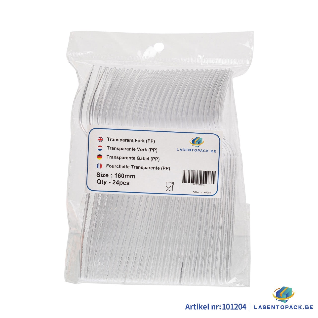 24x Herbruikbare vork 160 mm (PP), Transparant, per 24 stuks verpakt