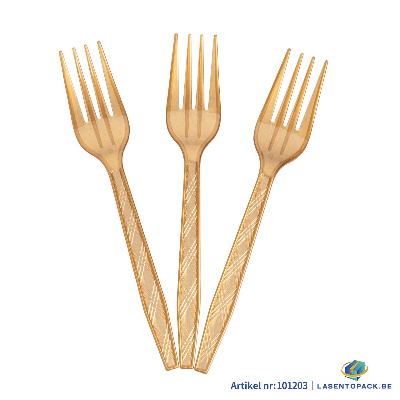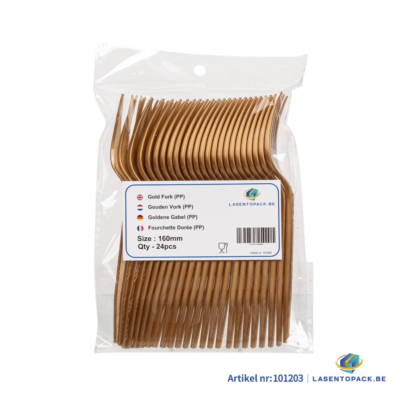 24x Herbruikbare vork 160 mm (PP), Goud, per 24 stuks verpakt