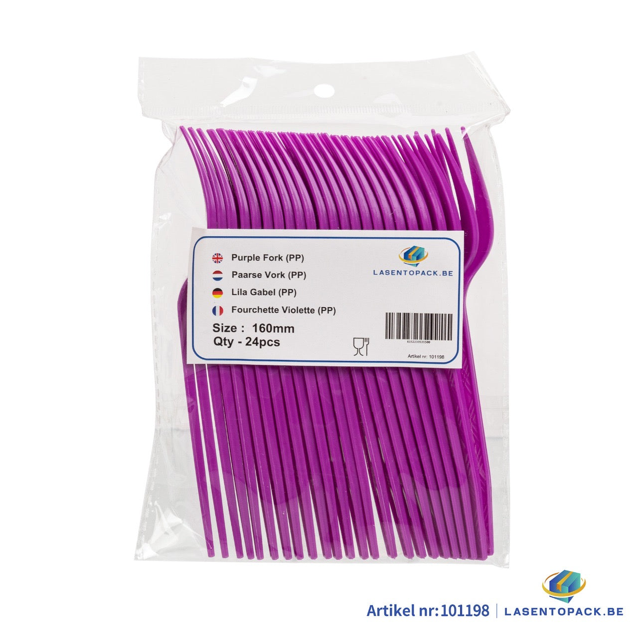 24x Herbruikbare vork 160 mm (PP), Paars, per 24 stuks verpakt