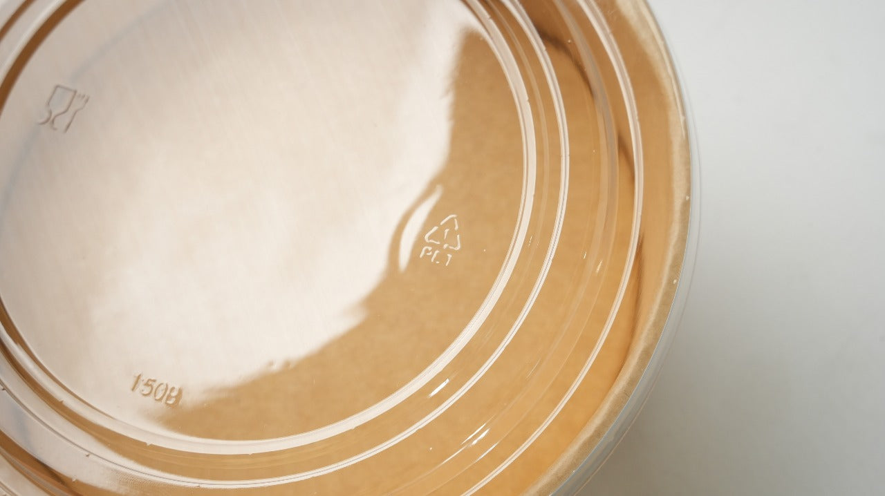 De deksel is vervaardigd uit transparant PET, een duurzaam en 100% recyclebaar kunststof dat uitstekend geschikt is voor voedseltoepassingen. PET beschermt het voedsel tegen stof, vuil en morsen, terwijl het voedsel vers en veilig blijft.