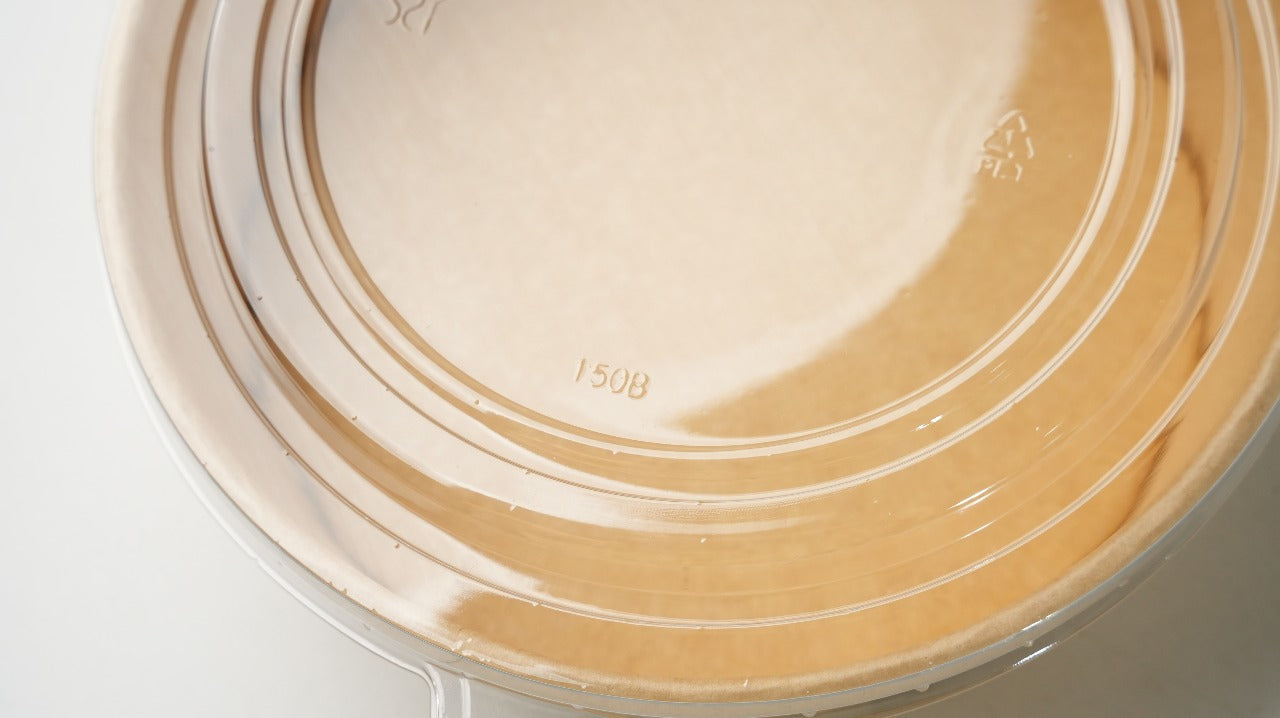 De deksel is vervaardigd uit transparant PET, een duurzaam en 100% recyclebaar kunststof dat uitstekend geschikt is voor voedseltoepassingen. PET beschermt het voedsel tegen stof, vuil en morsen, terwijl het voedsel vers en veilig blijft.