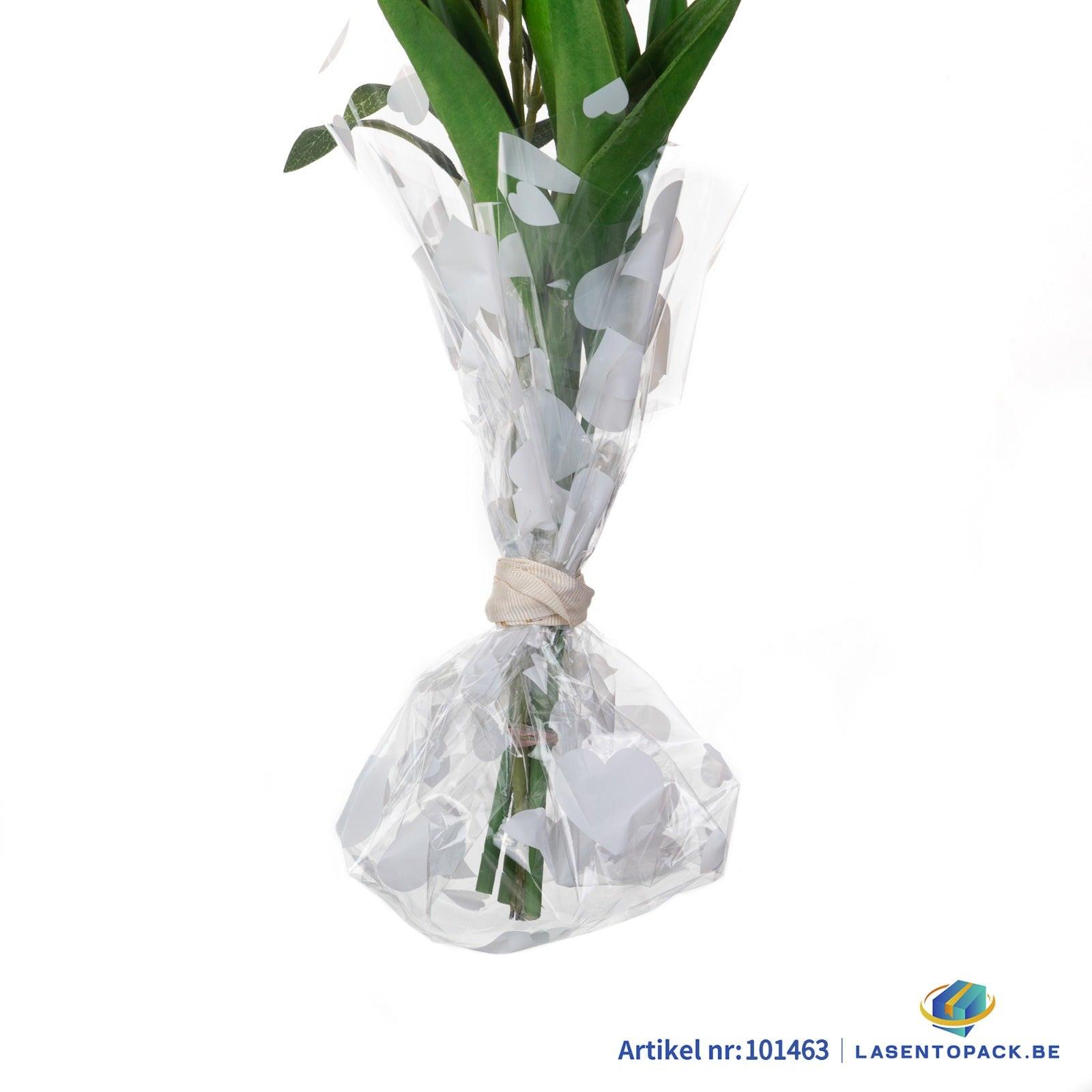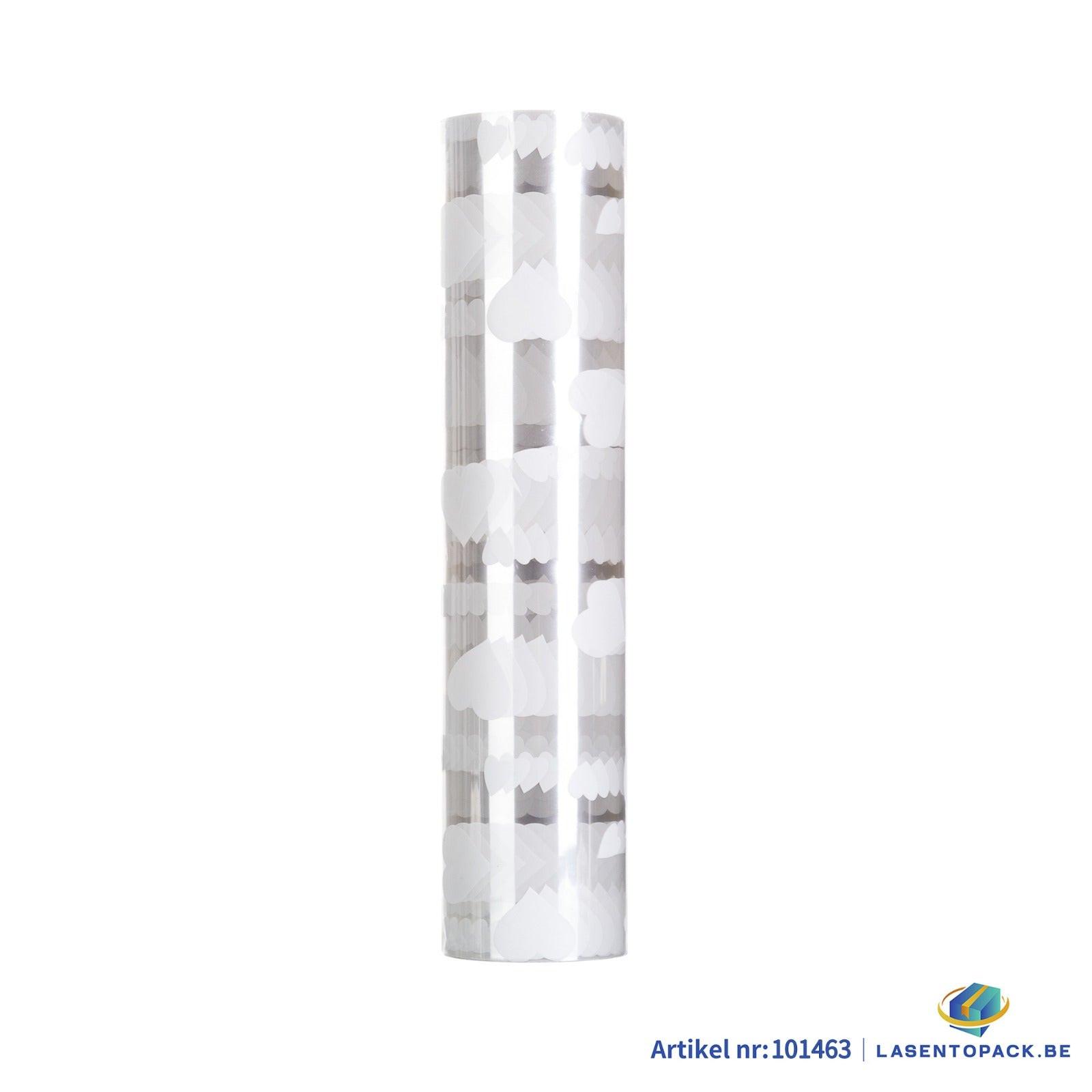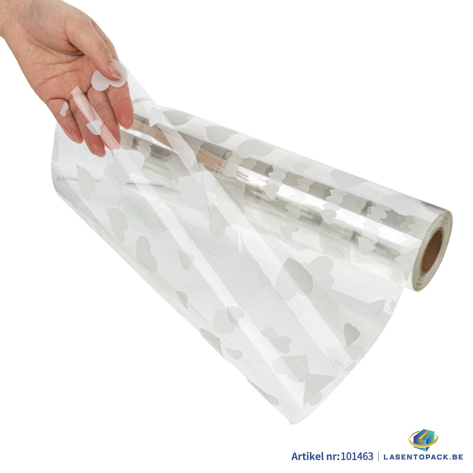 Cellofaan inpakfolie is een transparante folie met een decoratief hartjesdessin, ideaal voor het netjes en aantrekkelijk verpakken van cadeaus. Doordat de folie doorzichtig is, blijft de inhoud goed zichtbaar. Dit maakt het cellofaan zeer geschikt voor het inpakken van fruitmanden, cadeaumanden, bloemen en planten. De stevige kwaliteit zorgt voor een mooie afwerking en is geschikt voor zowel particulier als professioneel gebruik.