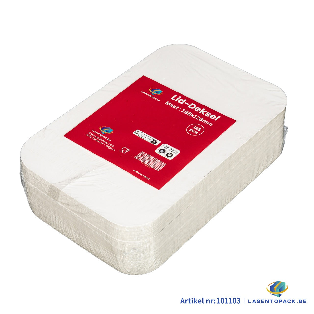 125 stuks Deksel voor Aluminium Bak 850 ml – 198 x 128 mm (Aluminium/Papier Combinatie)