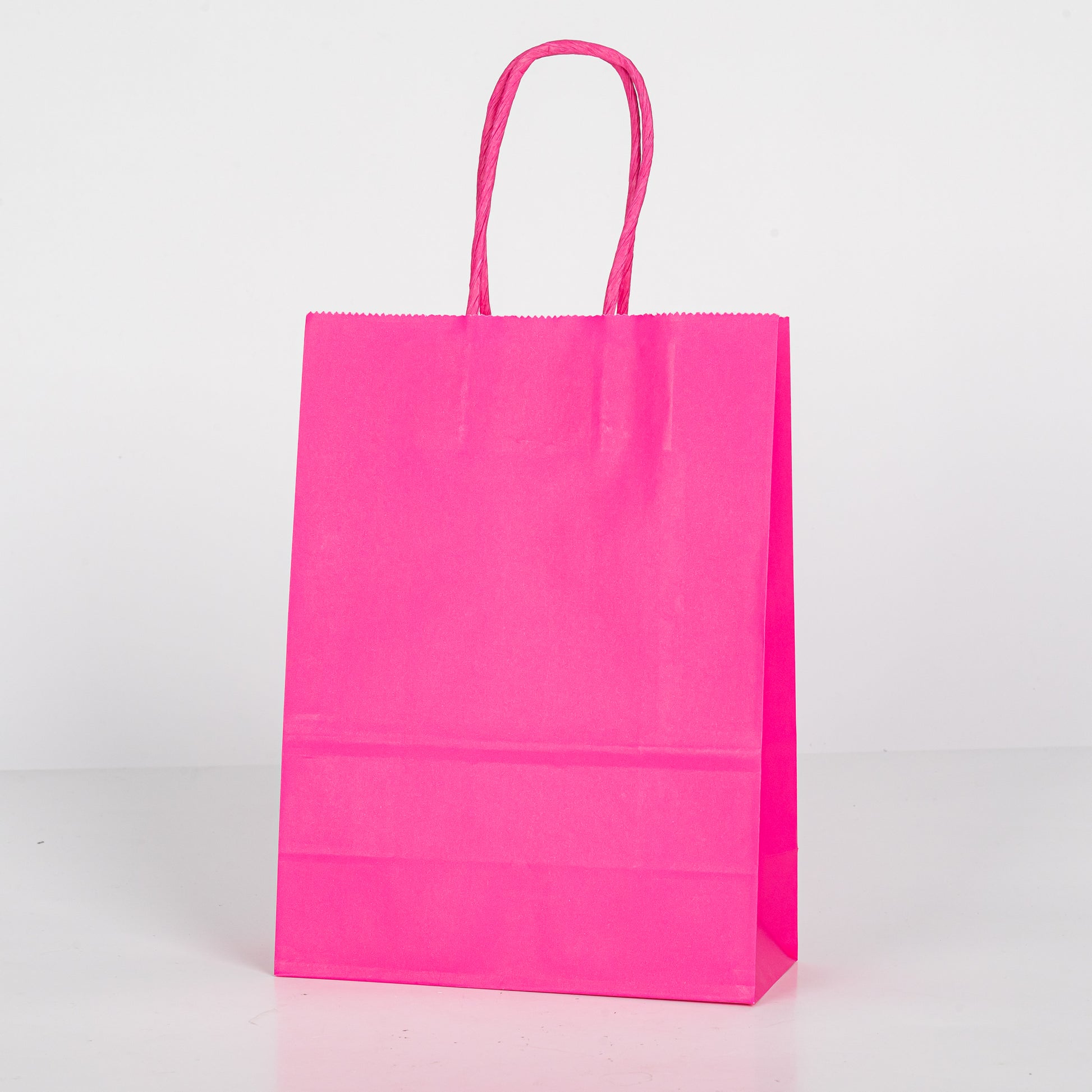 12x Papieren tas gedraaid handvat - 16cm x 22cm x 8cm Hot Pink