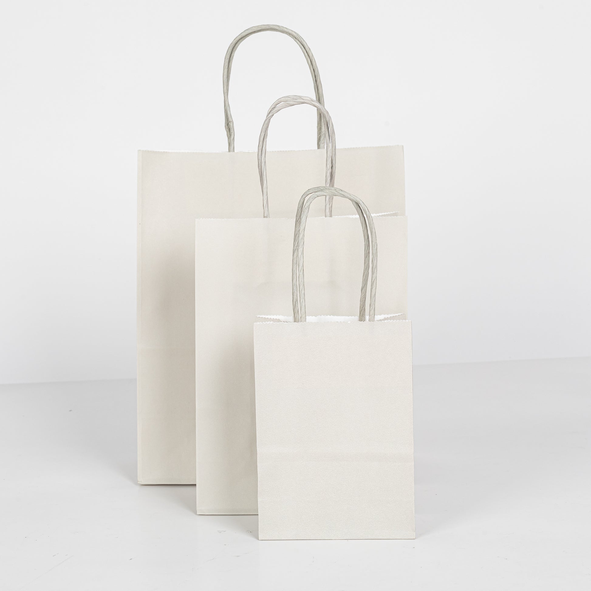 12x Papieren tas gedraaid handvat - 16cm x 22cm x 8cm Off White
