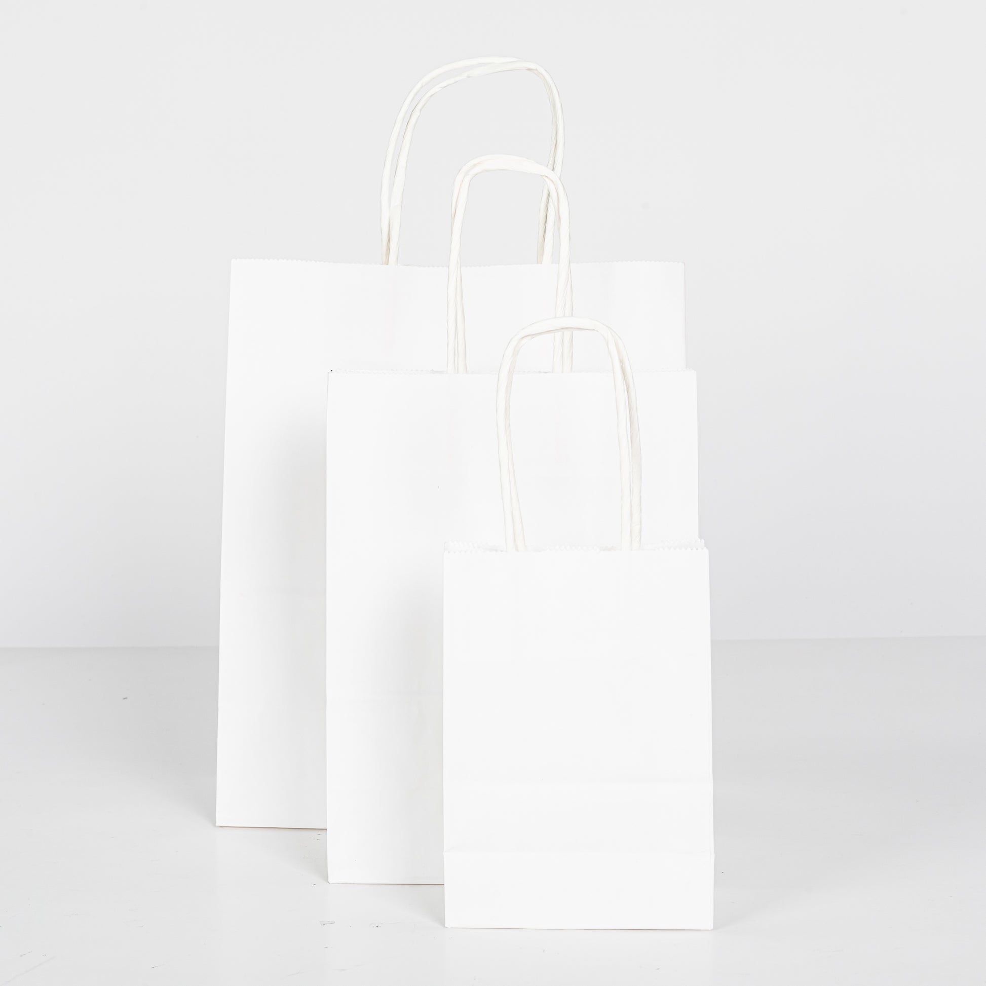 12x Papieren tas gedraaid handvat - 16cm x 22cm x 8cm Wit