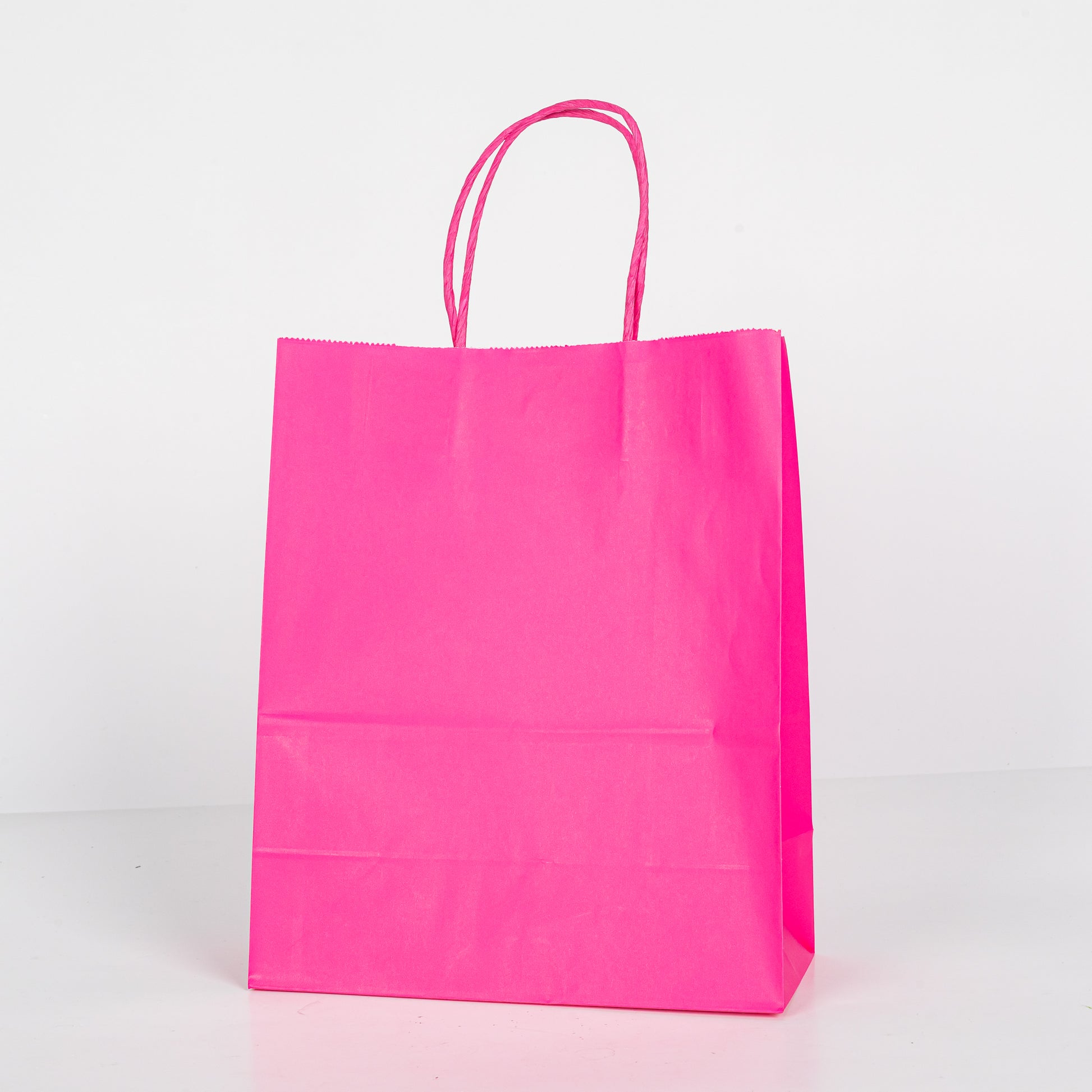 12X Papieren tas gedraaid handvat - 22cm x 27cm x 11cm Hot Pink