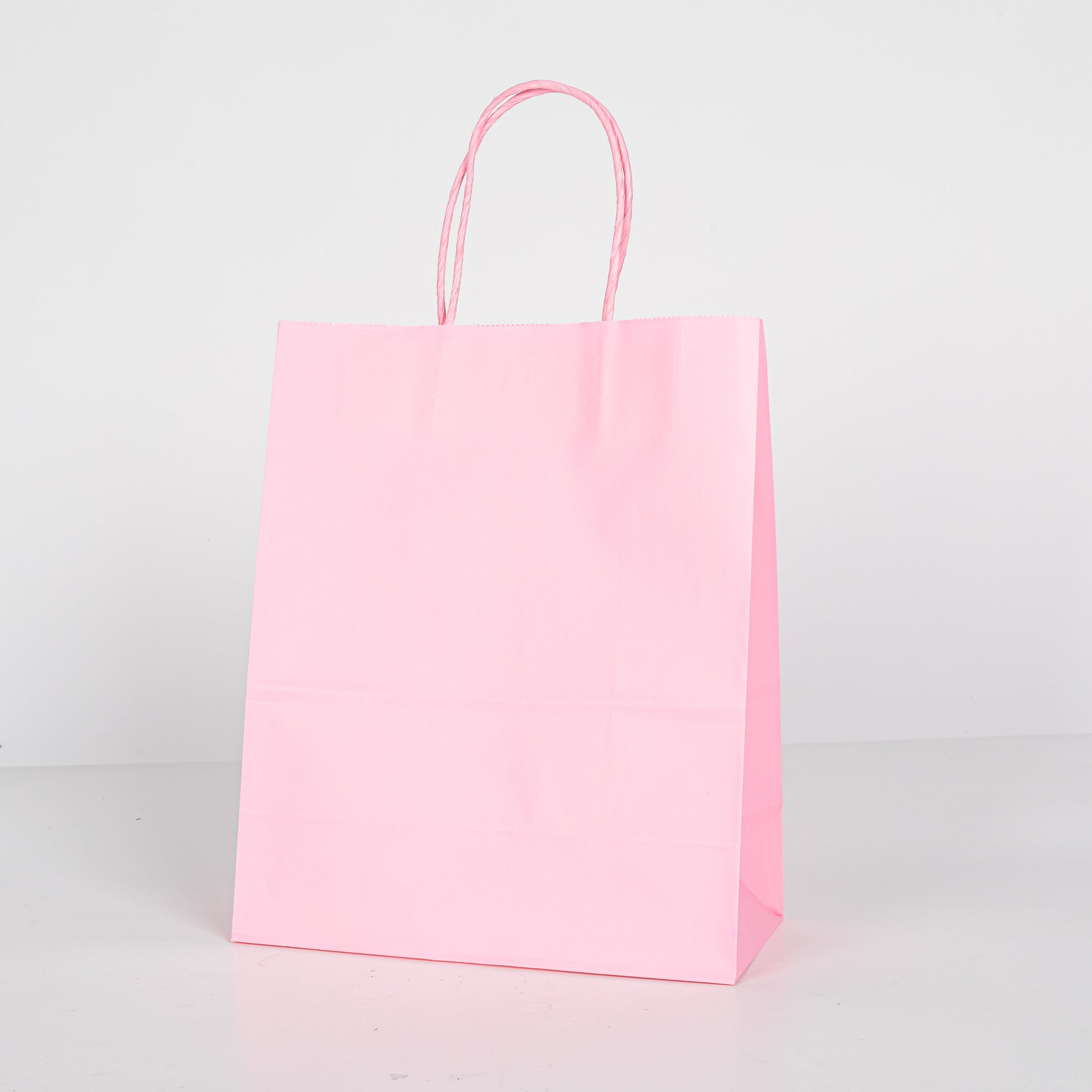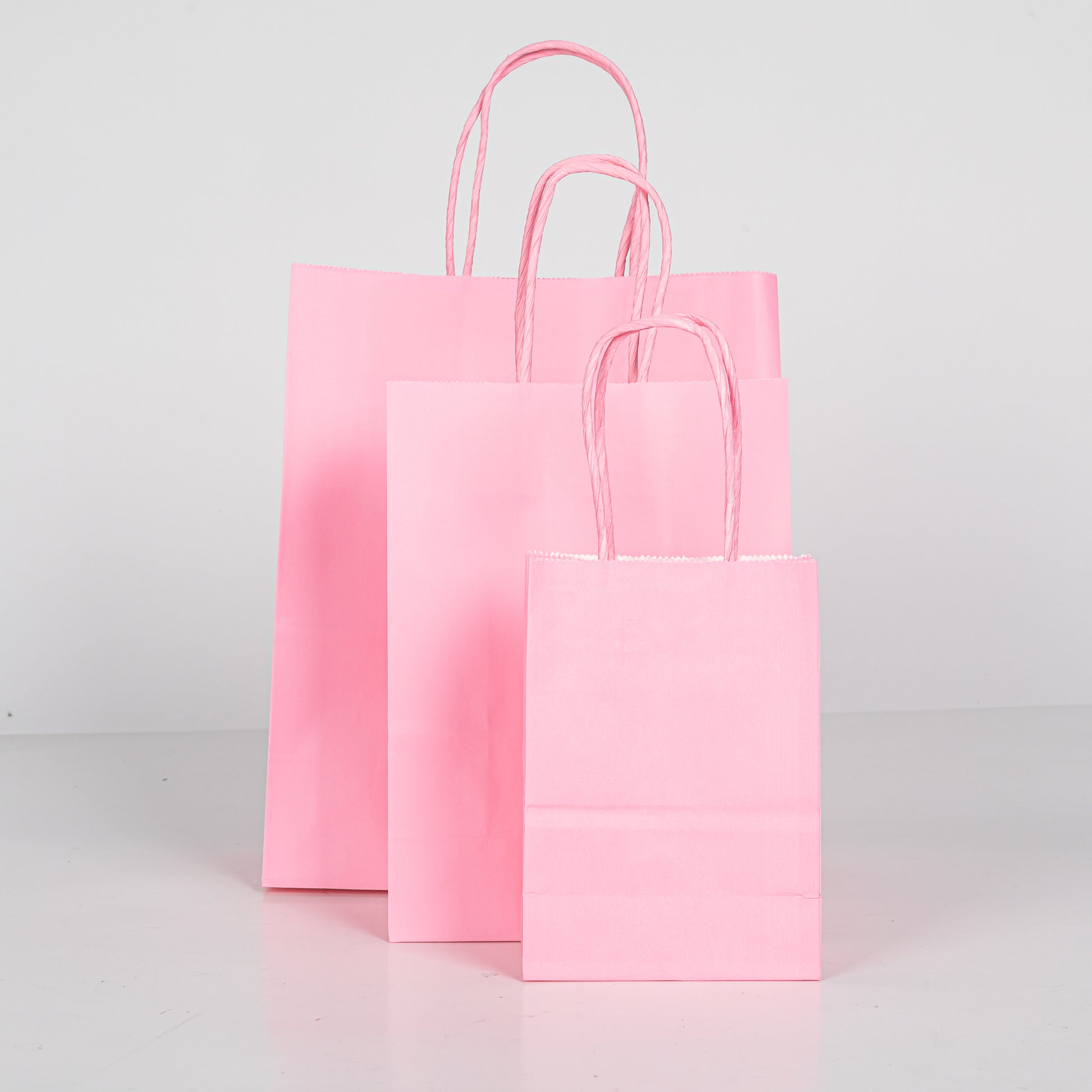 12x Papieren tas gedraaid handvat - 22cm x 27cm x 11cm Licht Roze