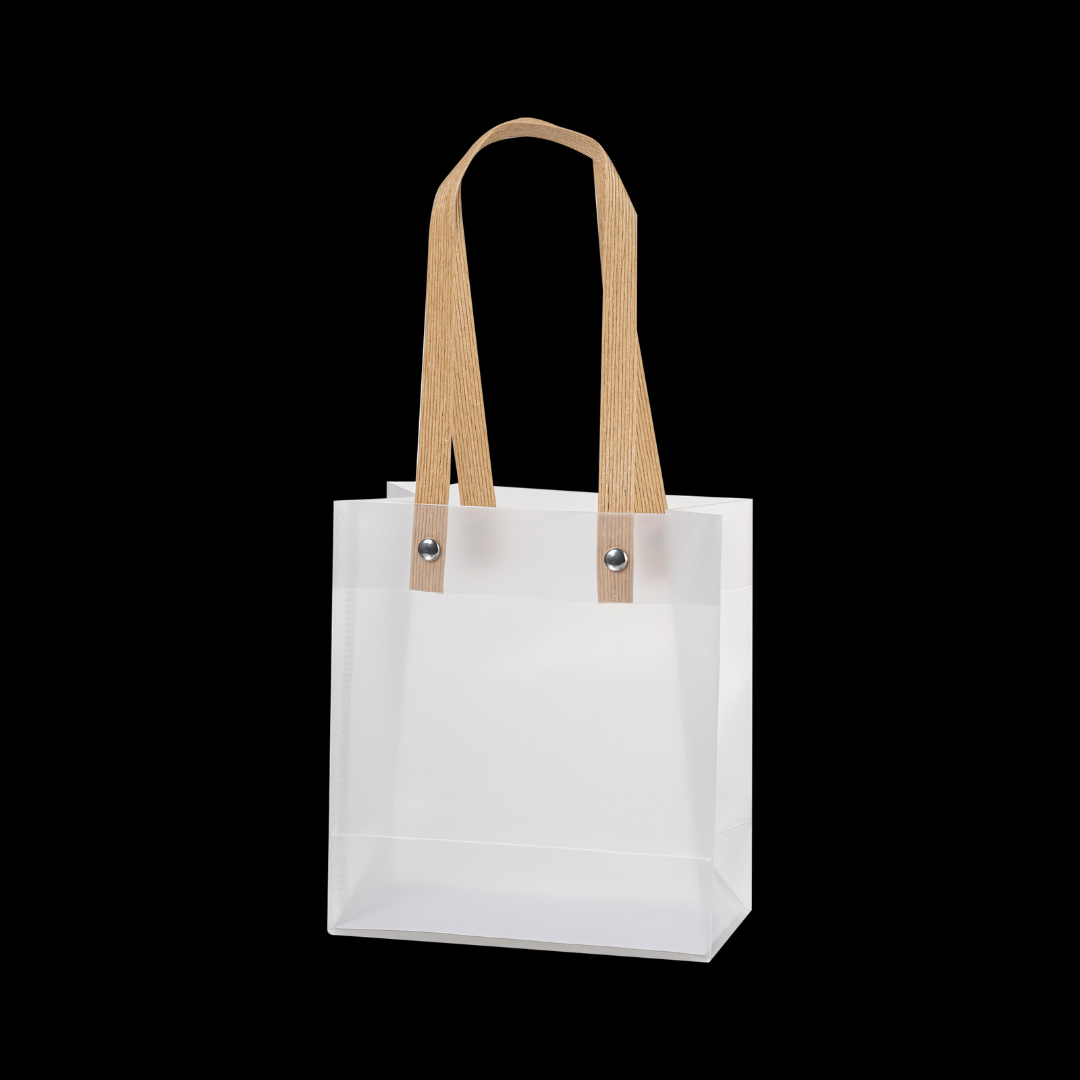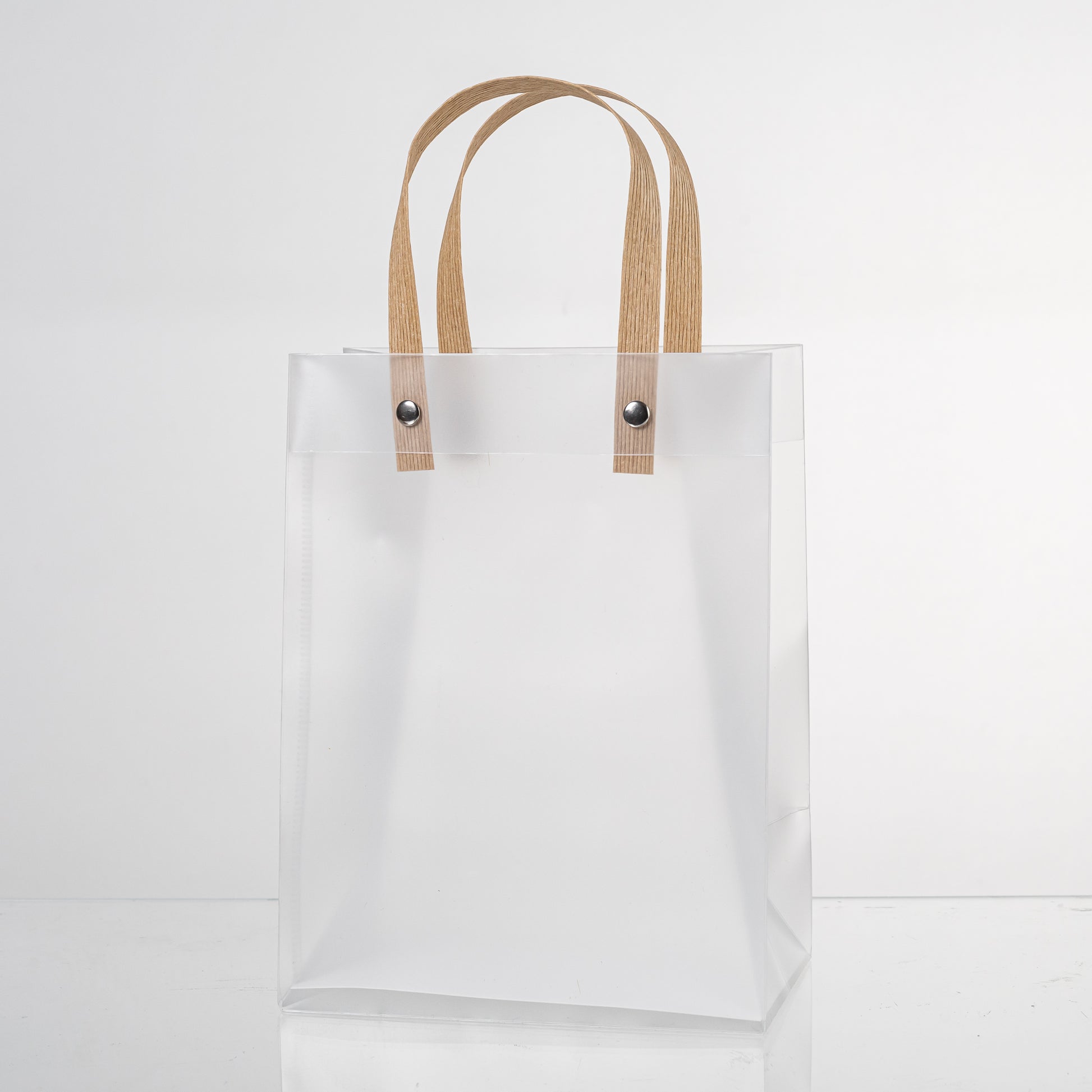 12x Transparante Frosted Plastic Tas met Handvat 20cm x 15cm x 10cm