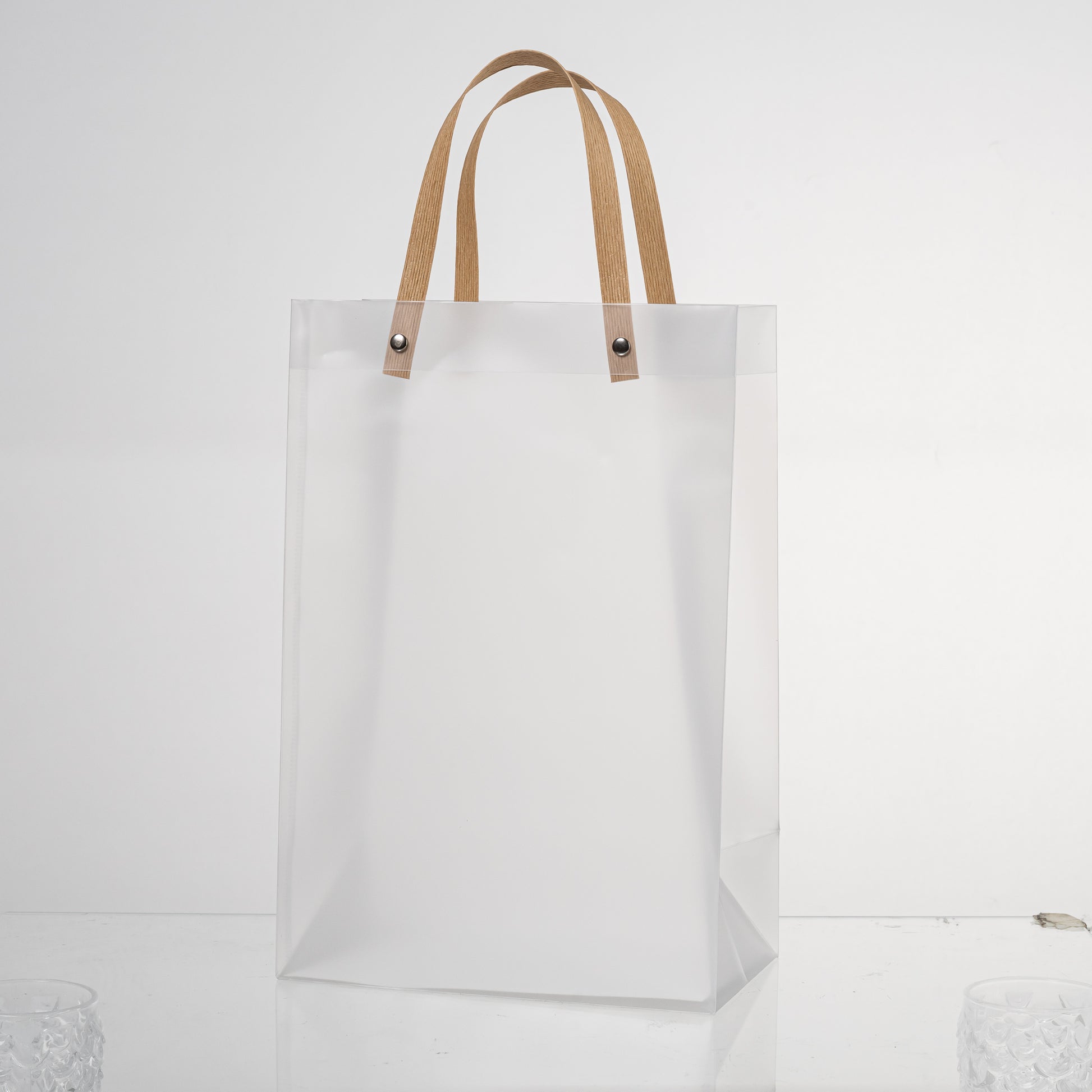 12x Transparante Frosted Plastic Tas met Handvat 20cm x 30cm x 12cm