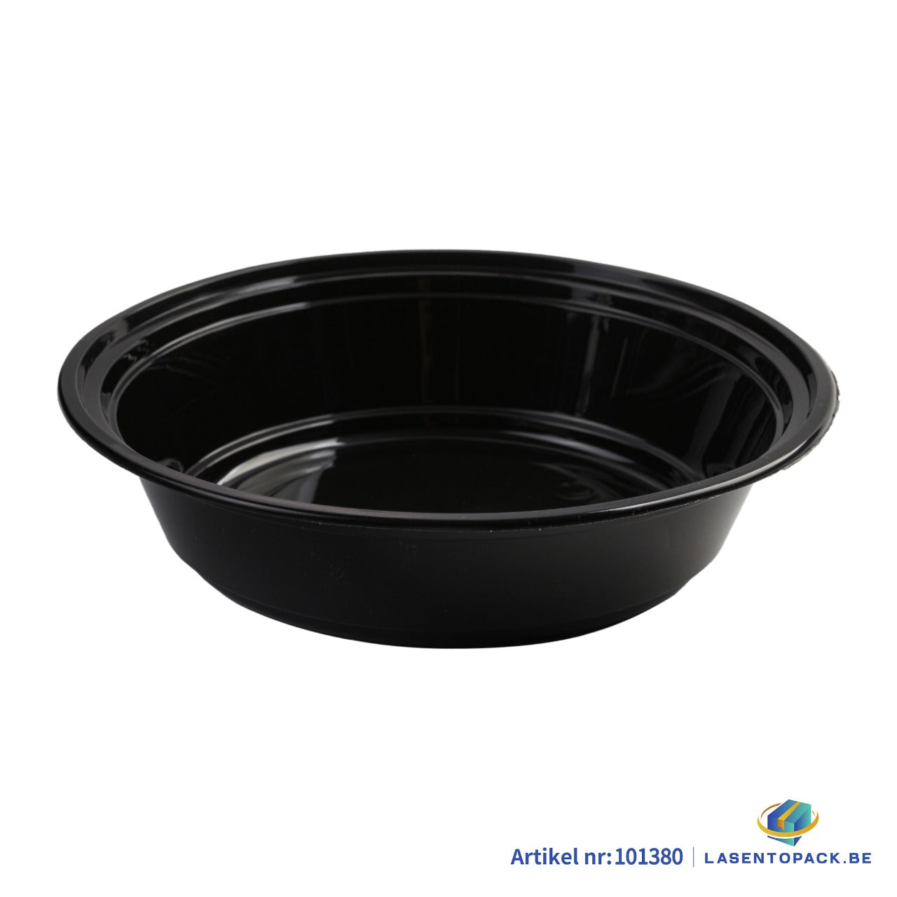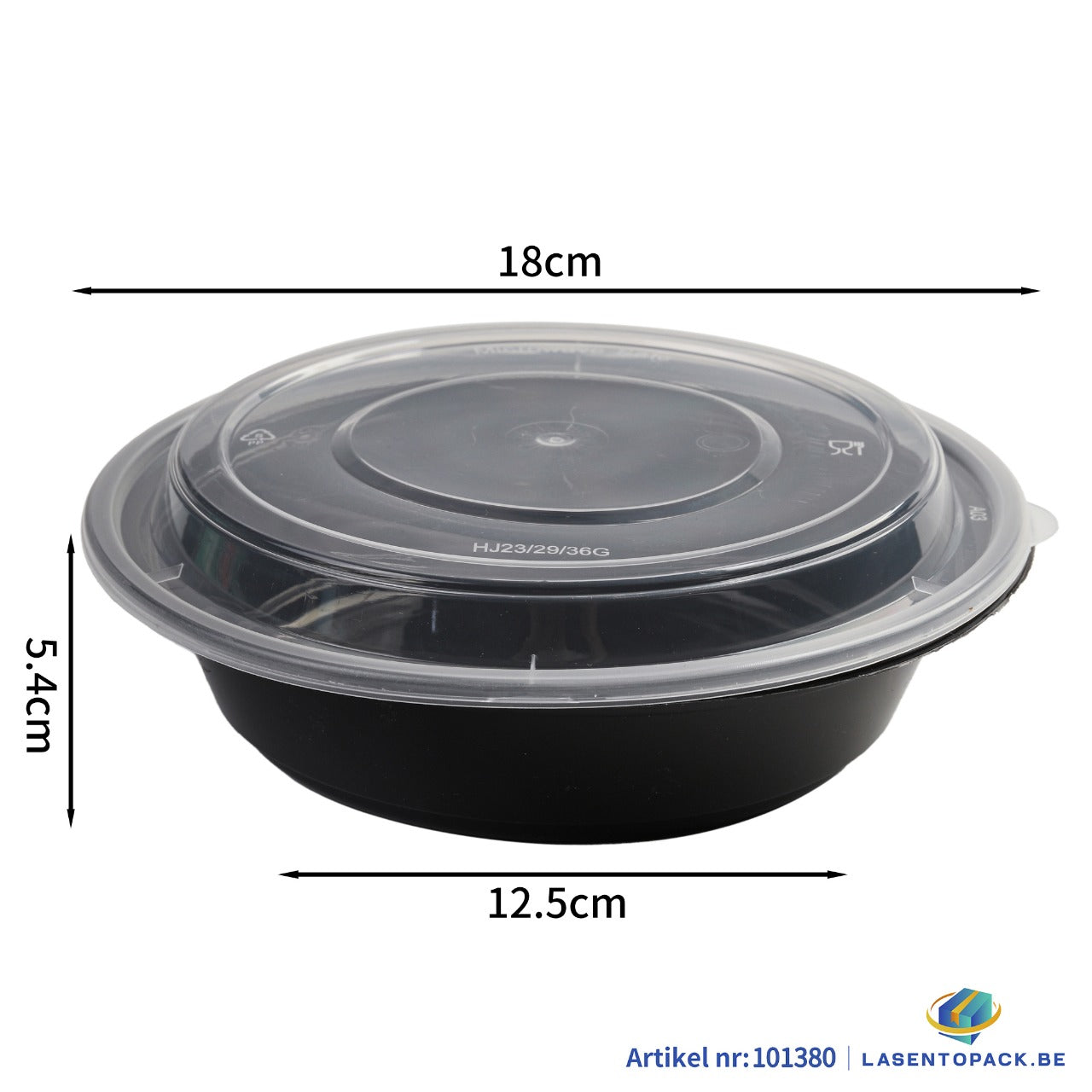 150x Asian Soep / Poke Bowl met deksel 700 ml Zwart PP (set)