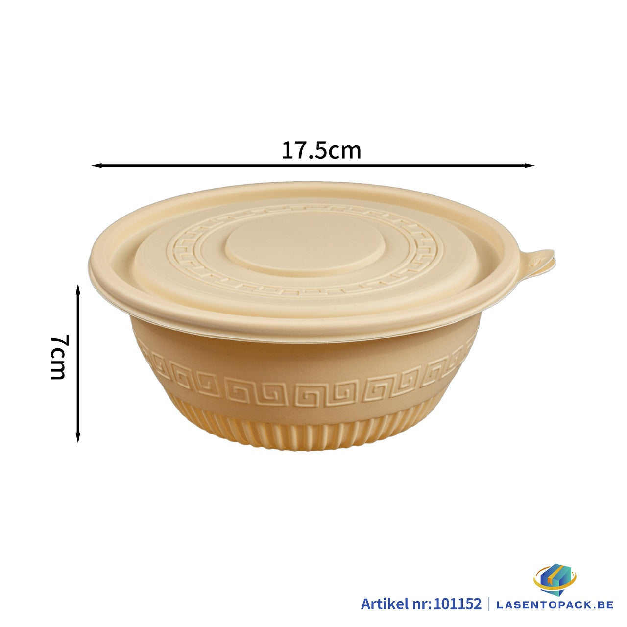 Met een diameter van 17,50 cm en een hoogte van 7 cm biedt de bowl voldoende ruimte voor salades, pasta’s, rijstgerechten of lichte maaltijden. De natuurlijke beige kleur geeft de bowl een rustige, verzorgde uitstraling – perfect voor foodconcepten die duurzaamheid uitstralen.