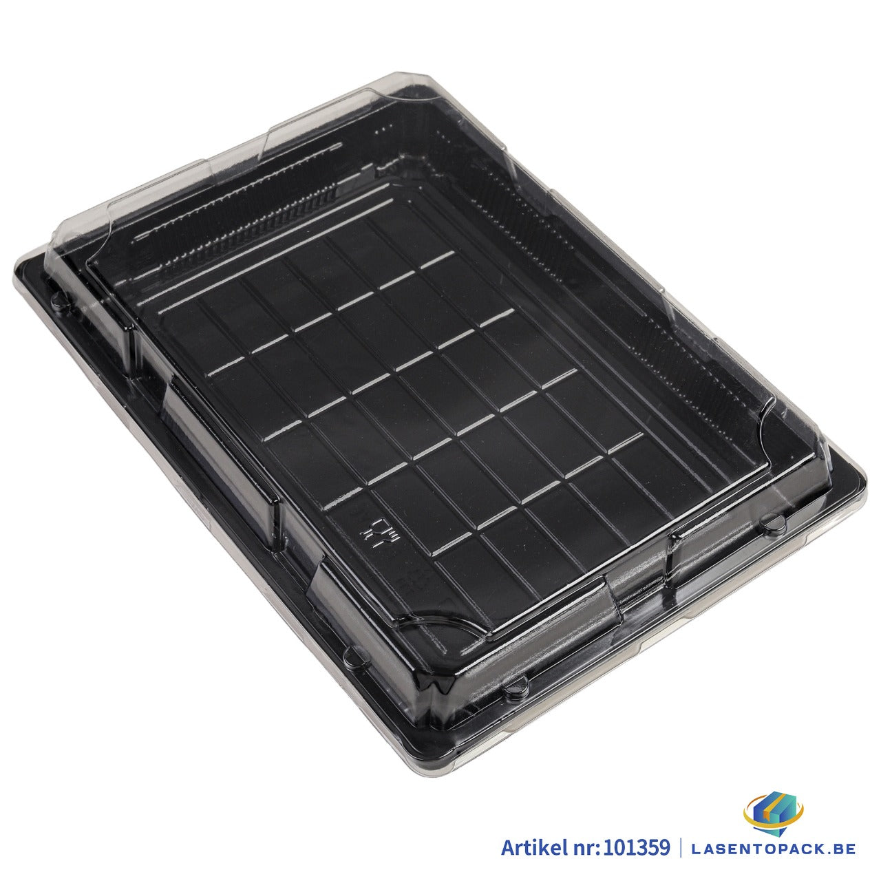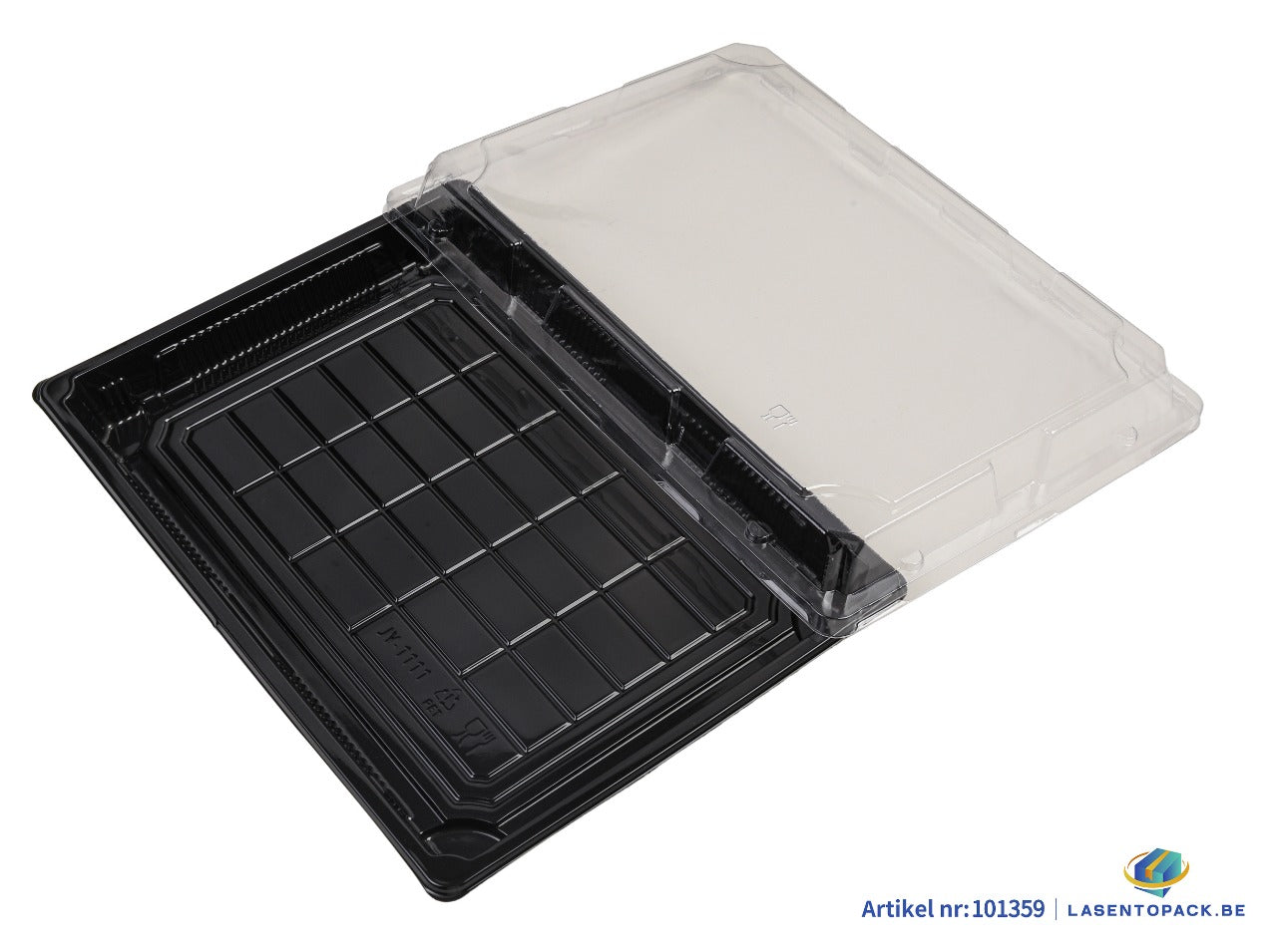 200x Sushi Tray + Deksel 255x155x20mm – Zwart