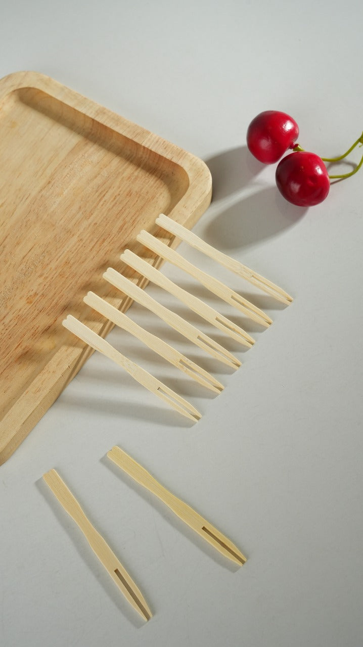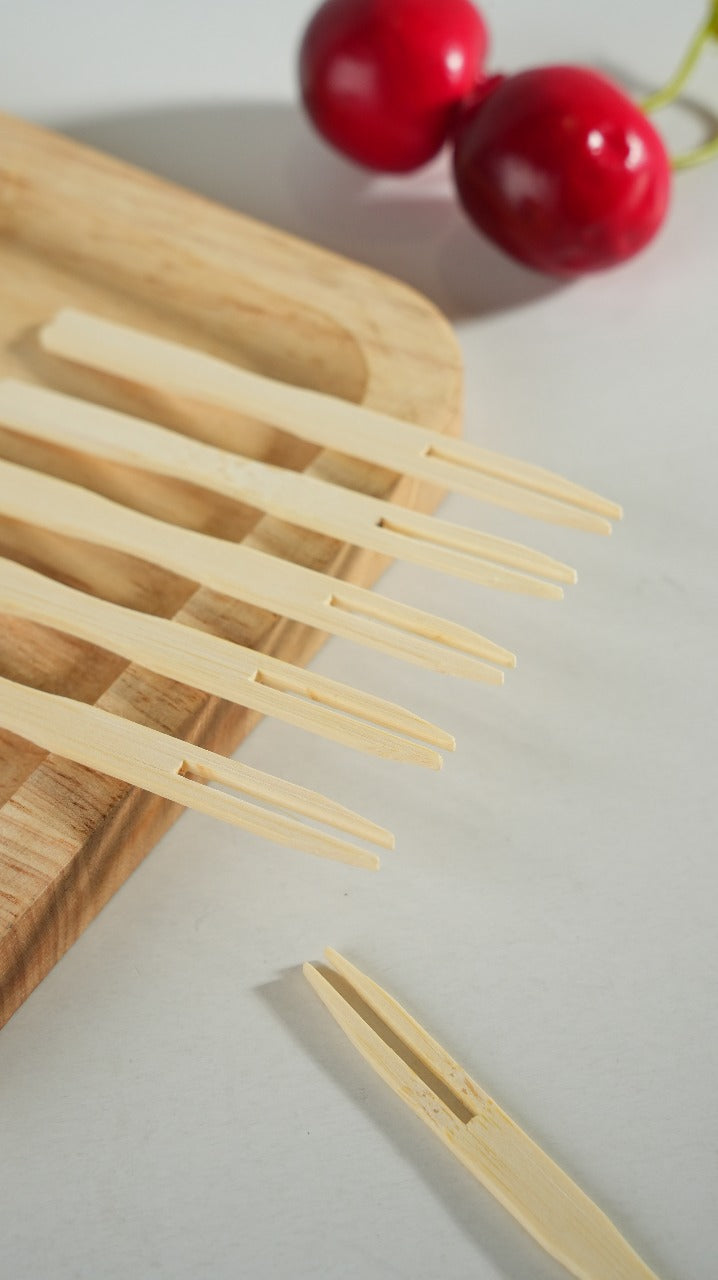Bamboe Snackvork 86mm FSC Bio – Per 100 stuks verpakt in een zakje / 3000 stuks in een doos