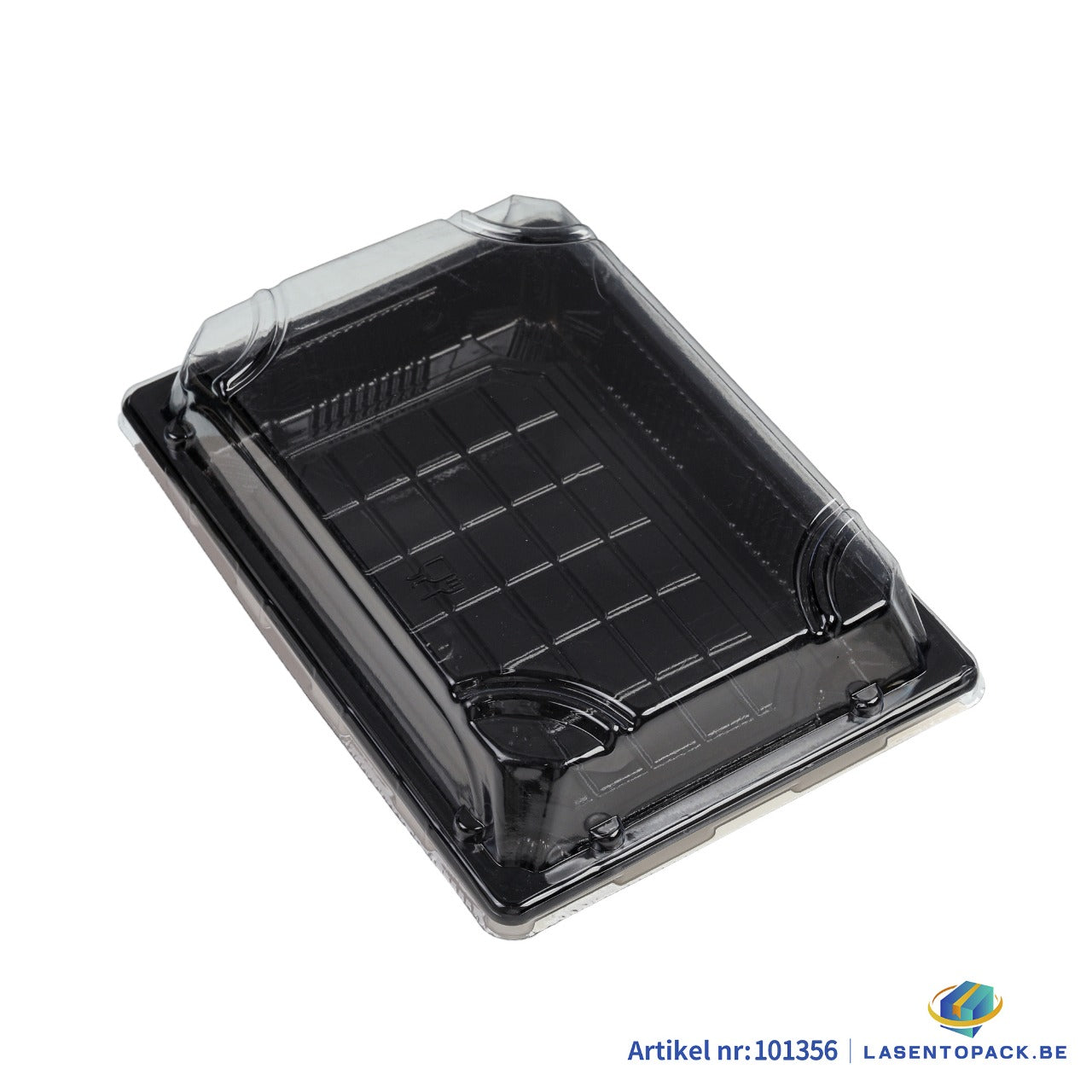 400x Sushi Tray + Deksel 185x130x20mm – Zwart