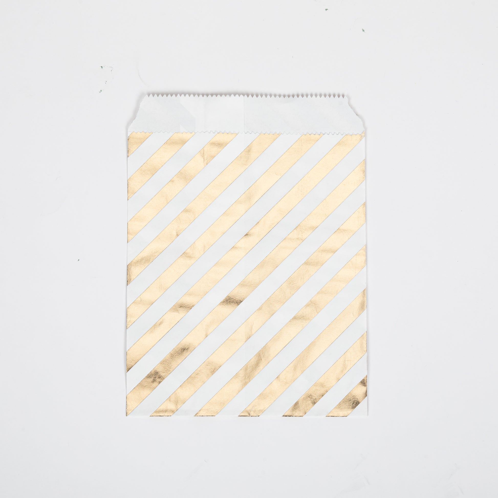 50 stuks Cadeau Papieren Zakjes gestreept kleur Goud 13cm x 18cm