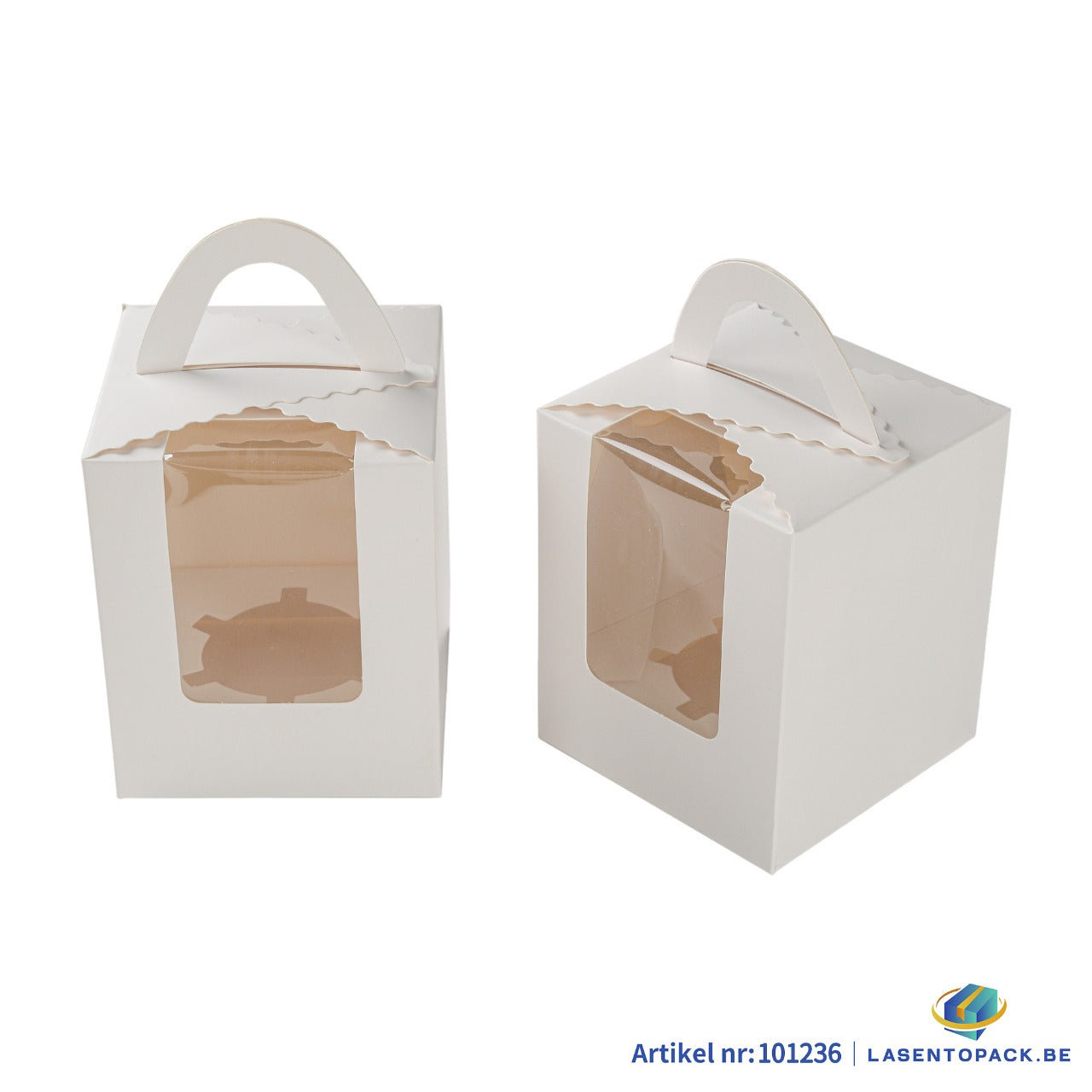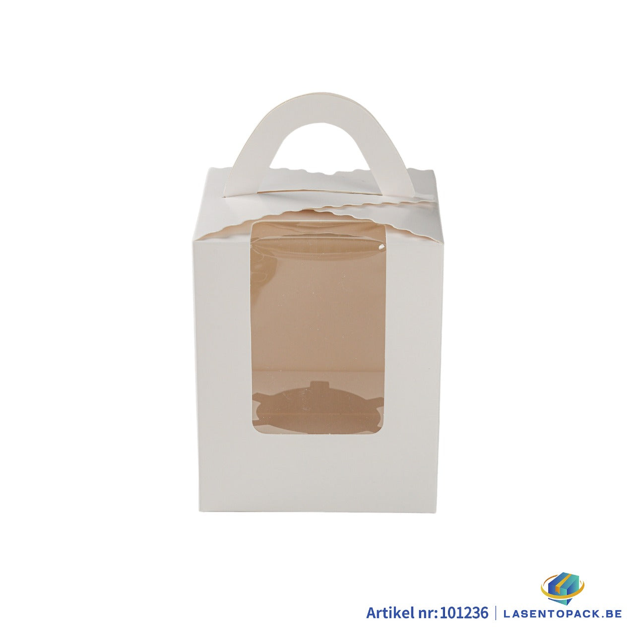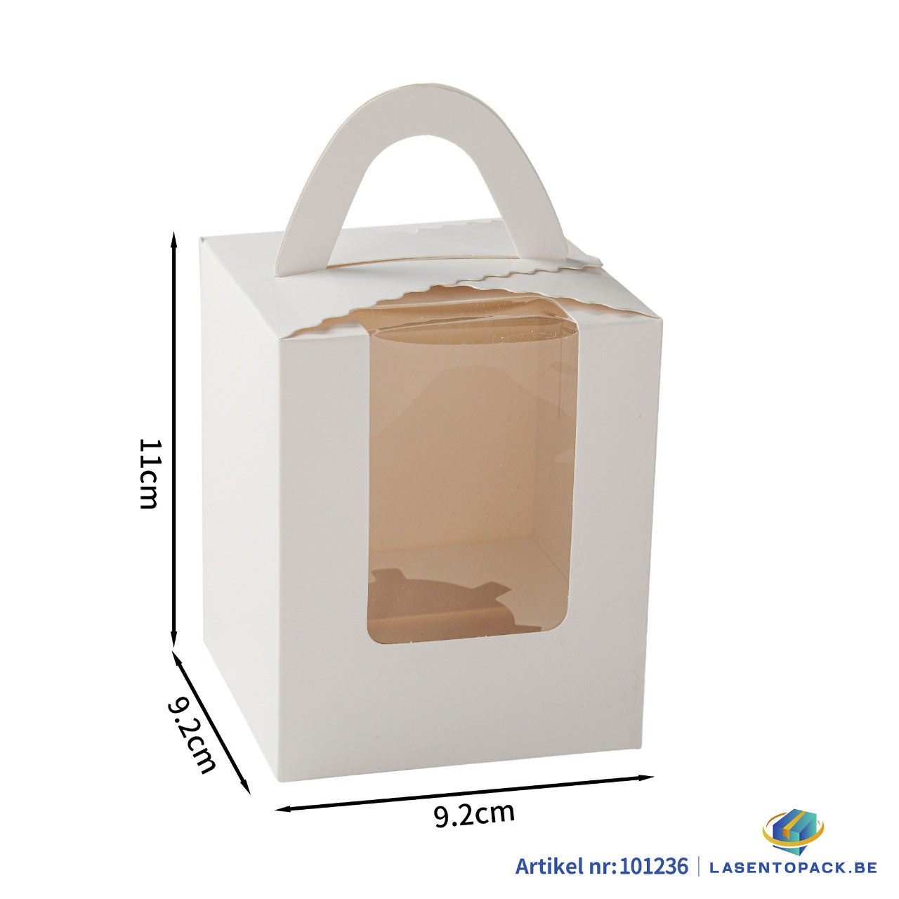 Taartdoos voor 1 Cupcake met Venster en Handvat – 9,2 x 9,2 x 11 cm