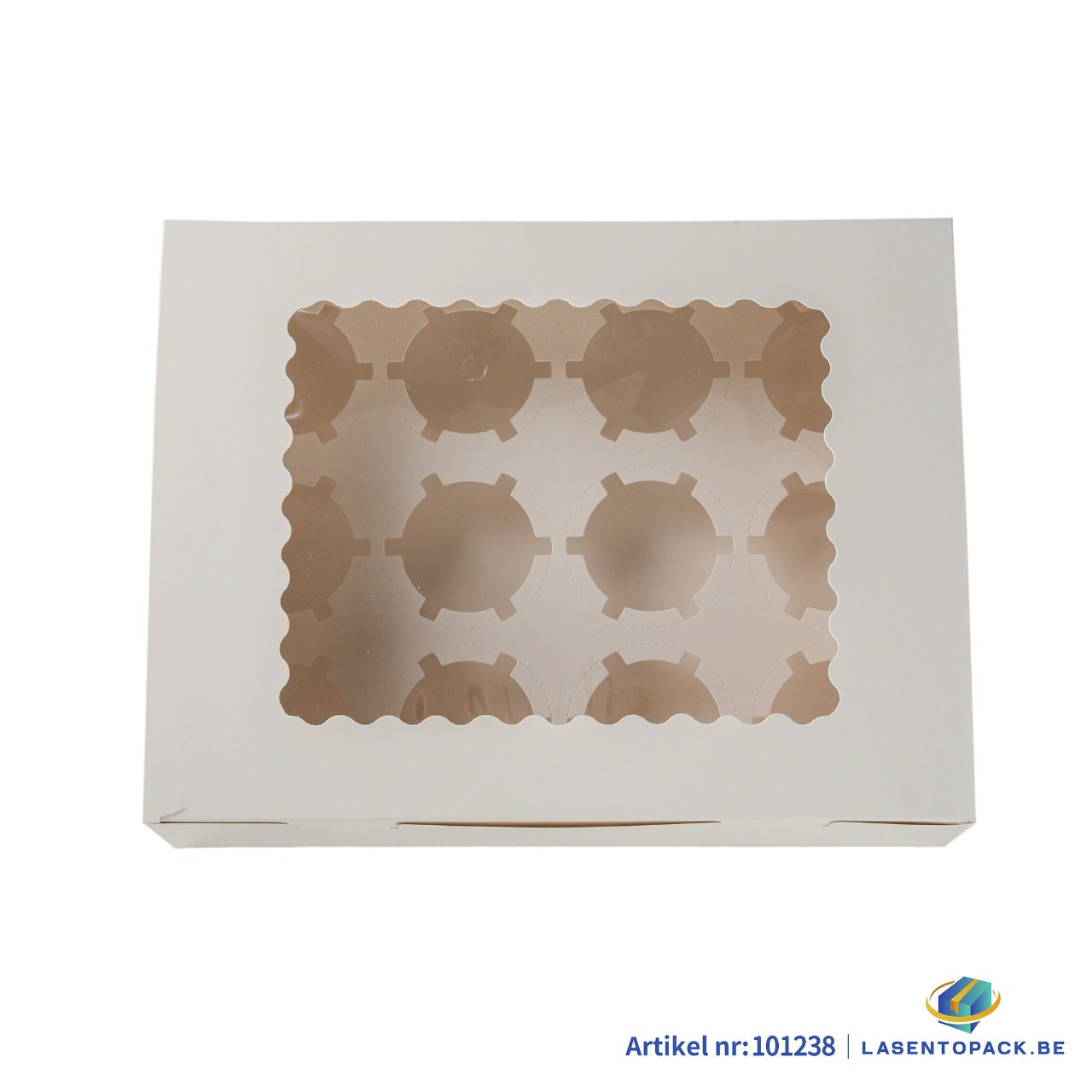 Taartdoos voor 12 Cupcakes met Venster – 32,5 x 25 x 9 cm (Inlay Uitneembaar)