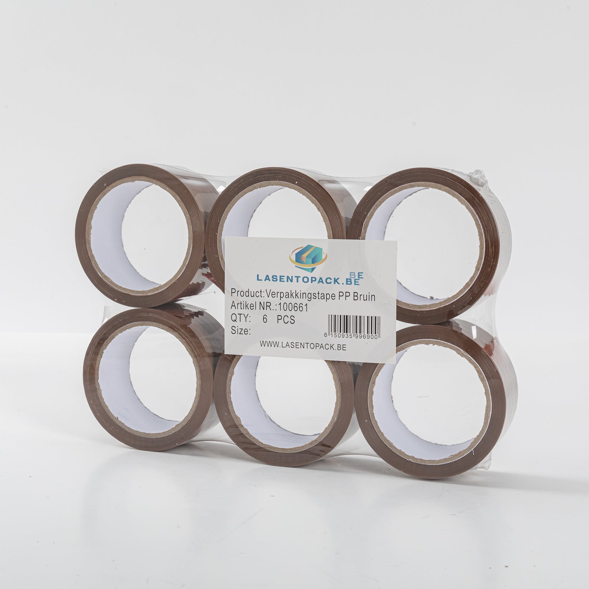 6x Verpakkingstape Bruin PP Plakband 48mmx66m